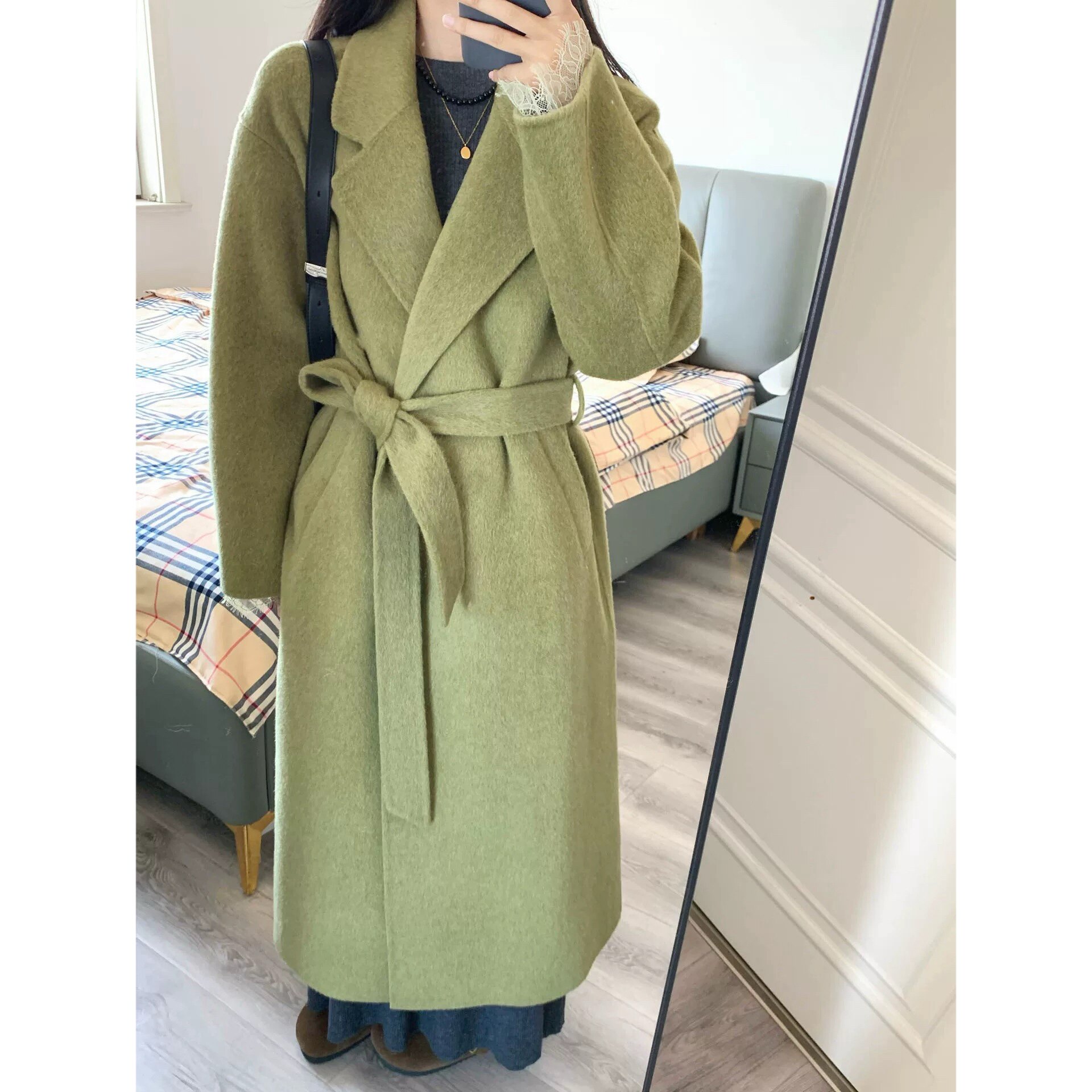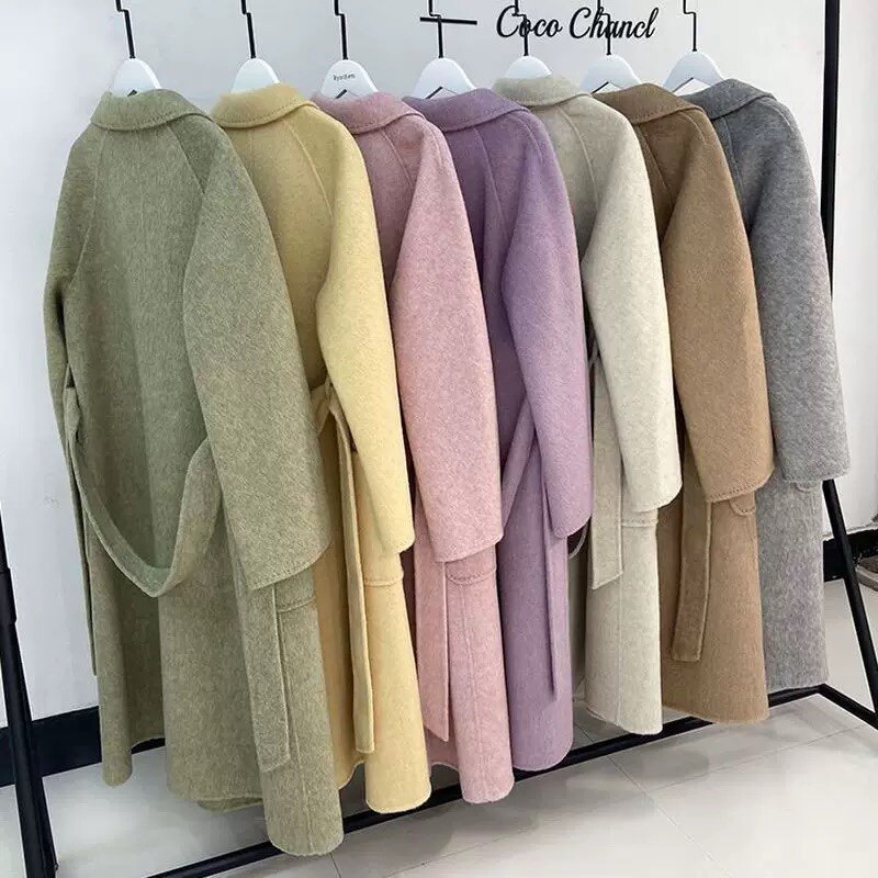 📚 双面呢大衣 西装领开衫式腰带收腰高级气质百搭长款秋冬 外套1.42