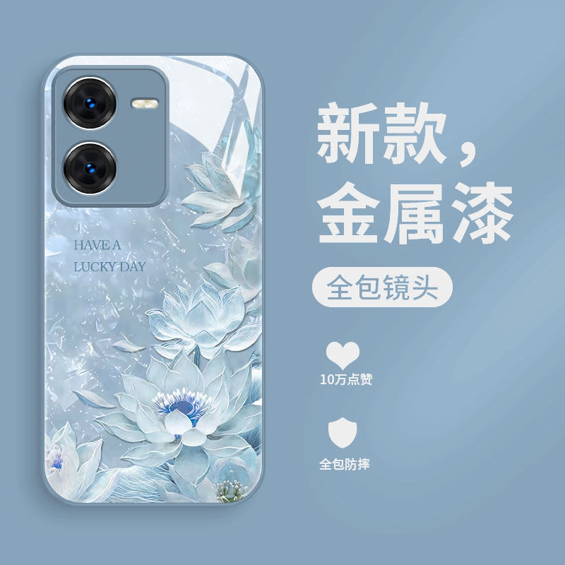 📚 适用vivoiqooz8液态玻璃手机壳iqooz8x保护套爱酷Z7网红爆款莲花icooz7i全包高级女款iQOOZ7X超薄防摔