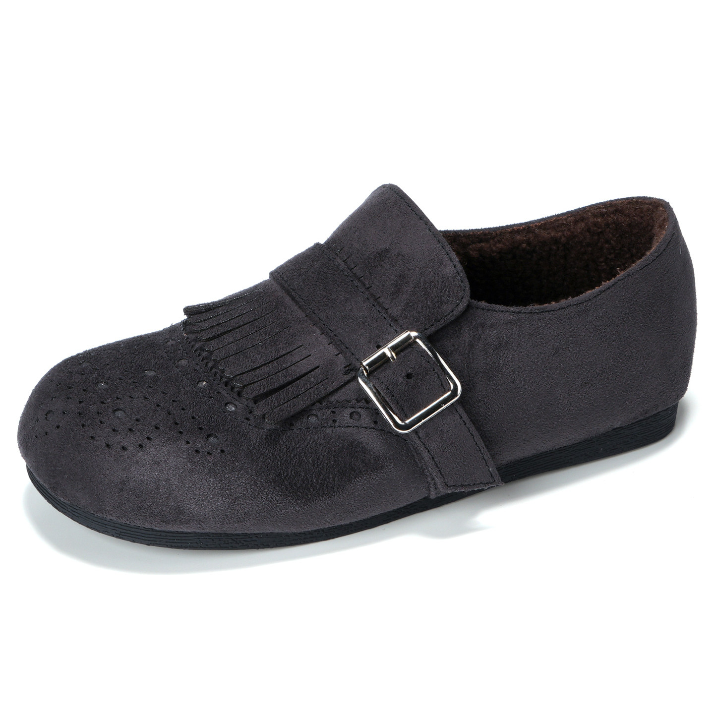 📚 真皮版~灰色加绒勃肯鞋女冬季超火全包一脚蹬棉鞋大码女鞋41到43