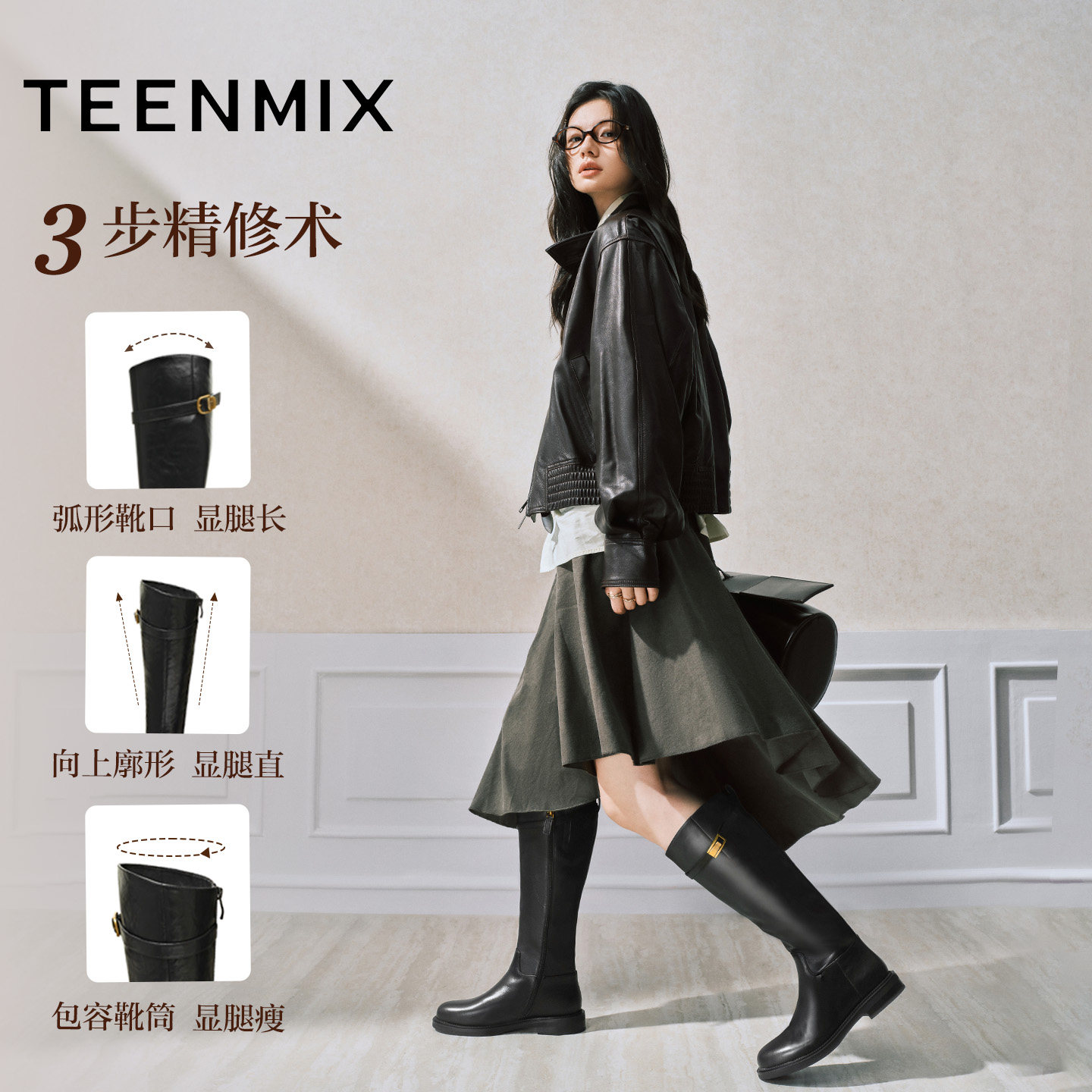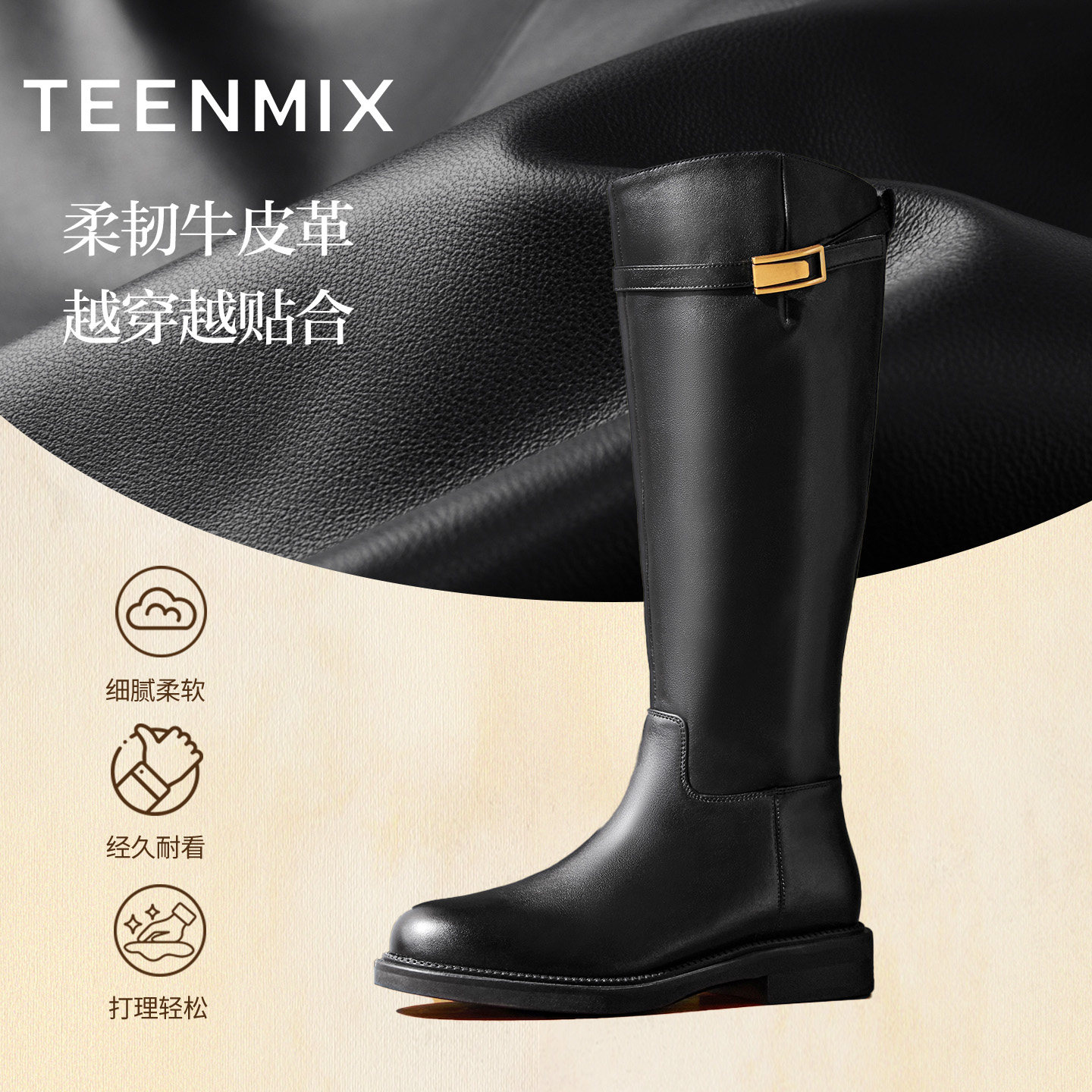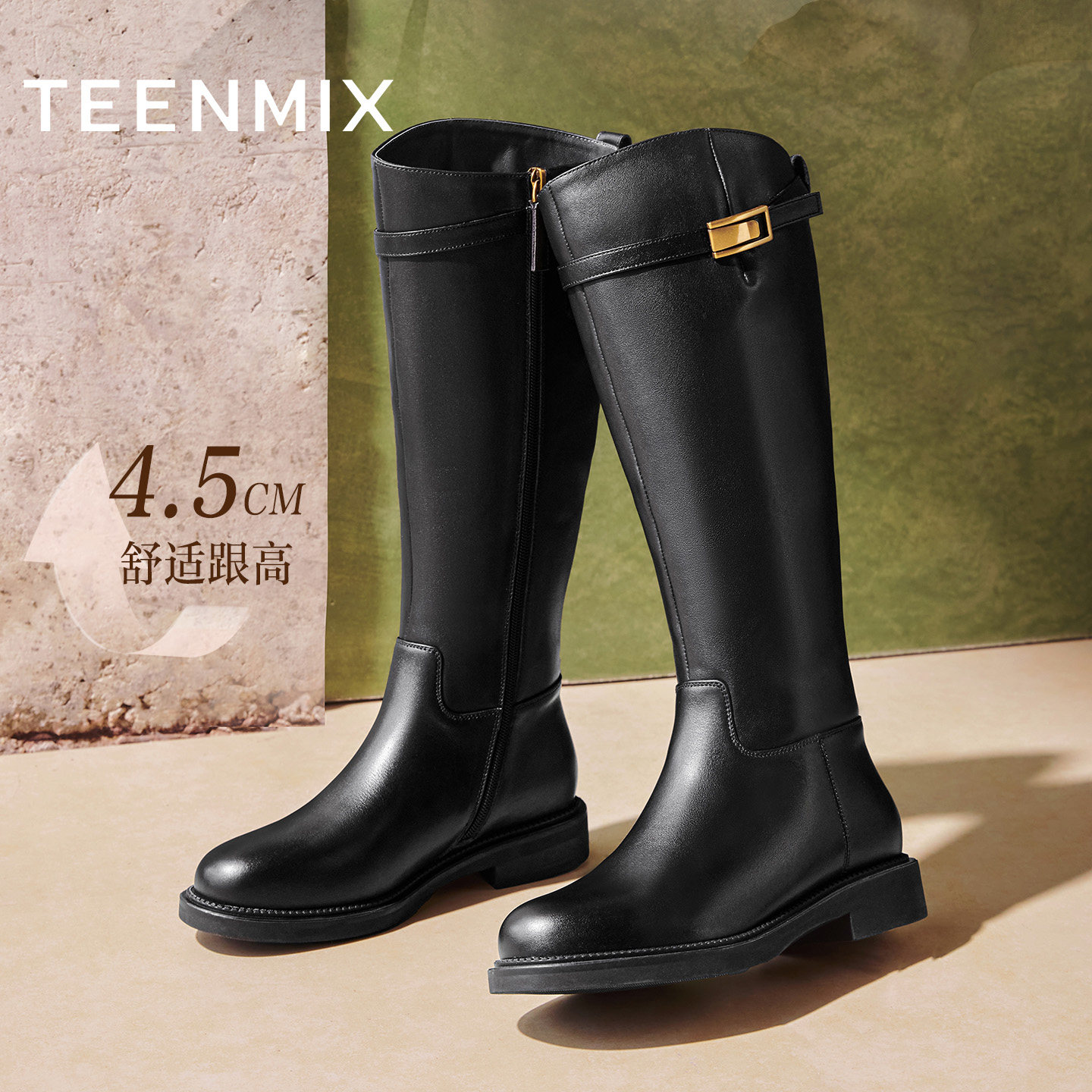 📚 天美意千金靴厚底骑士靴加绒长靴女鞋子高筒时装靴皮靴冬季新款
