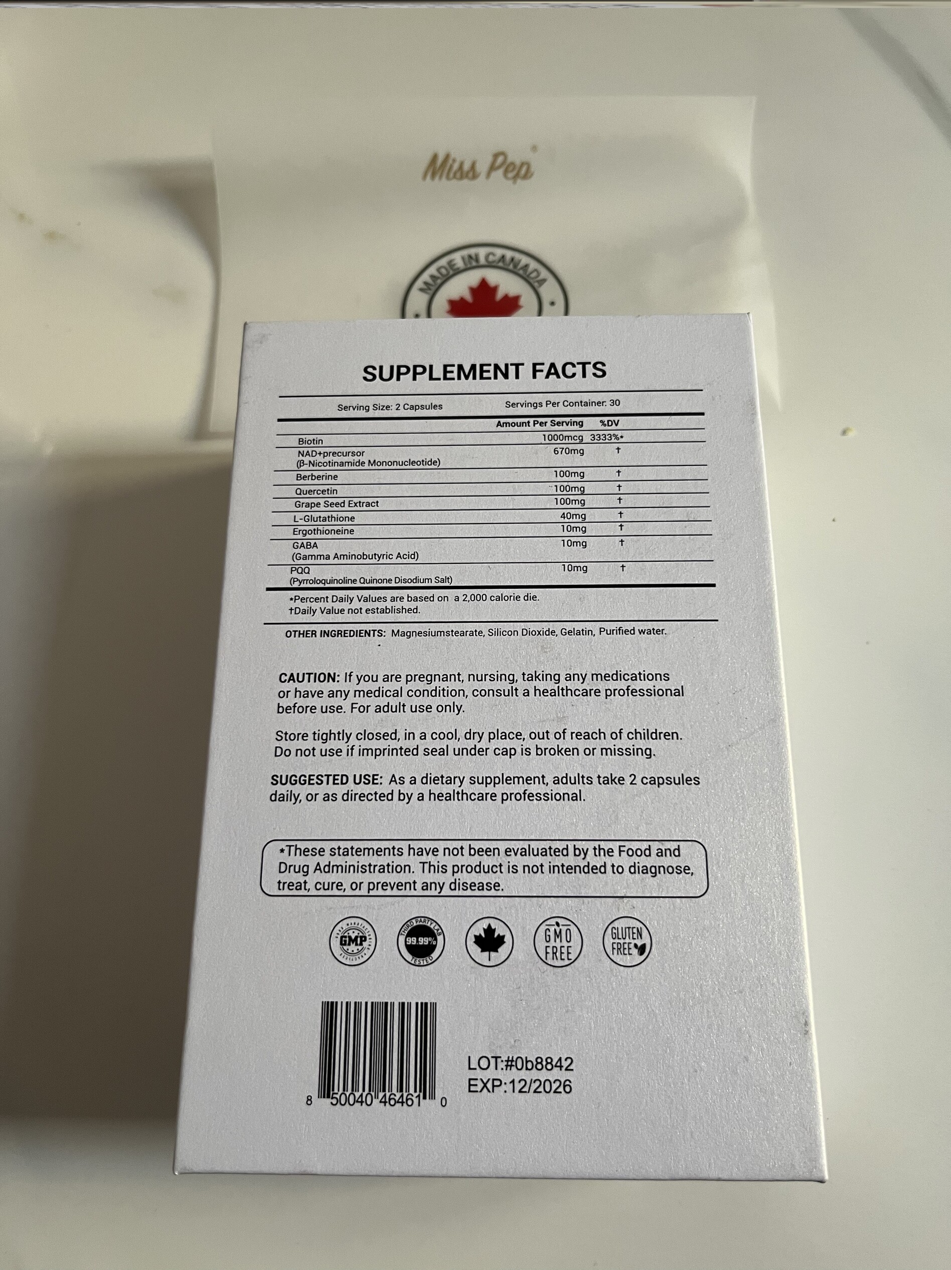 📚 加拿大原产MissPep NAD+20000 PLUS PQQ胶囊