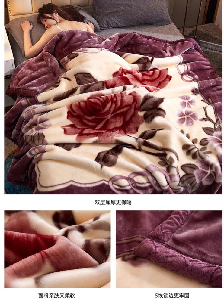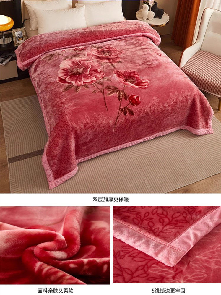📚 正品拉舍尔毛毯被子双层加厚冬季加绒盖毯保暖大红结婚珊瑚绒毯子