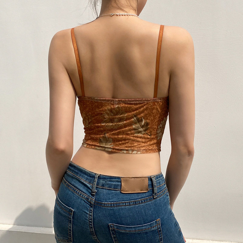 📚 Mesh tied lace printed bottom strap Vest Top蕾丝印花打底吊带
