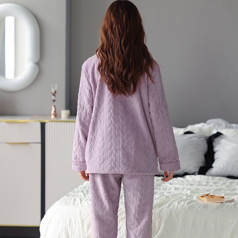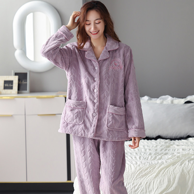 📚 秋冬季女士睡衣珊瑚绒加厚加绒长袖开衫大码冬款法兰绒家居服套装