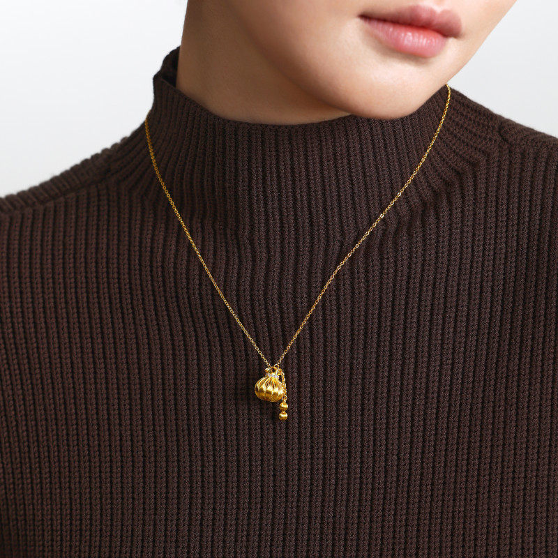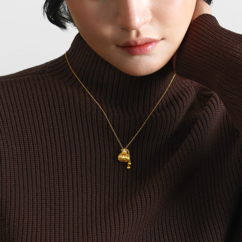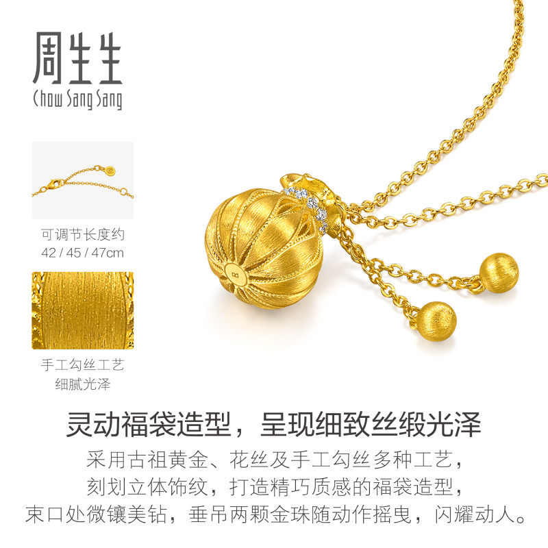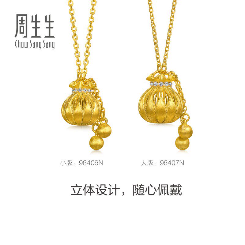 📚 周生生华宇古法黄金文化祝福足金镶嵌钻石钱袋项链96407N大版