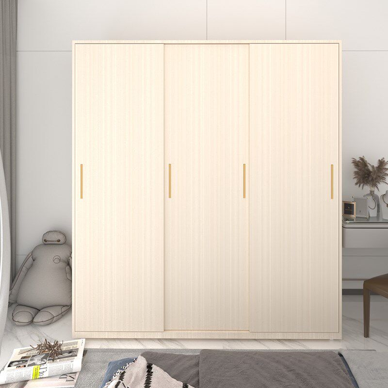 📚 家用衣柜落地卧室铁艺收纳推拉带锁无甲醛简约木纹可组合儿童柜子