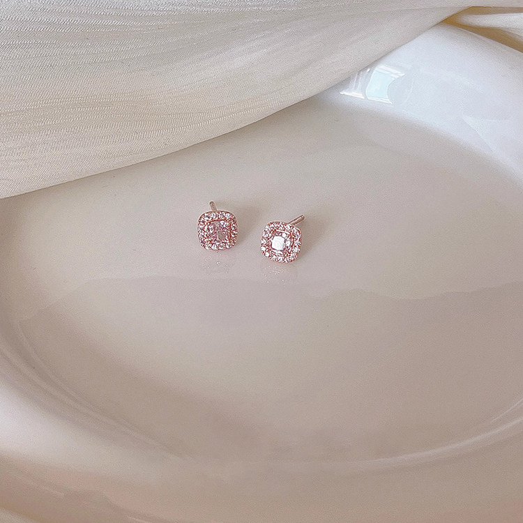 📚 S999纯银针锆石方糖耳钉女气质高级感耳环2026年新款爆款名媛耳饰
