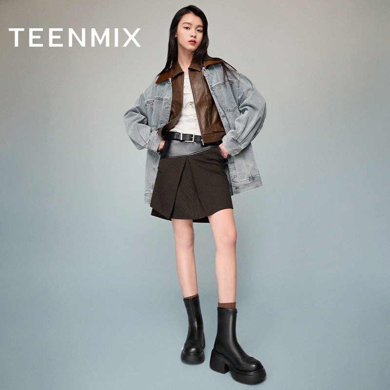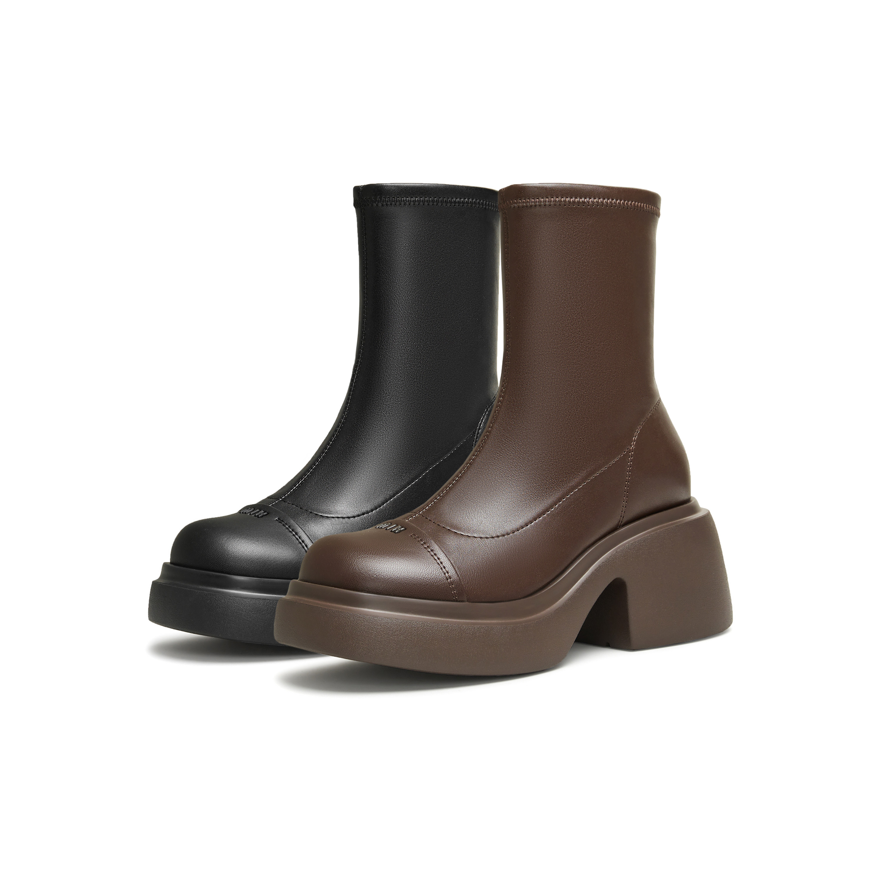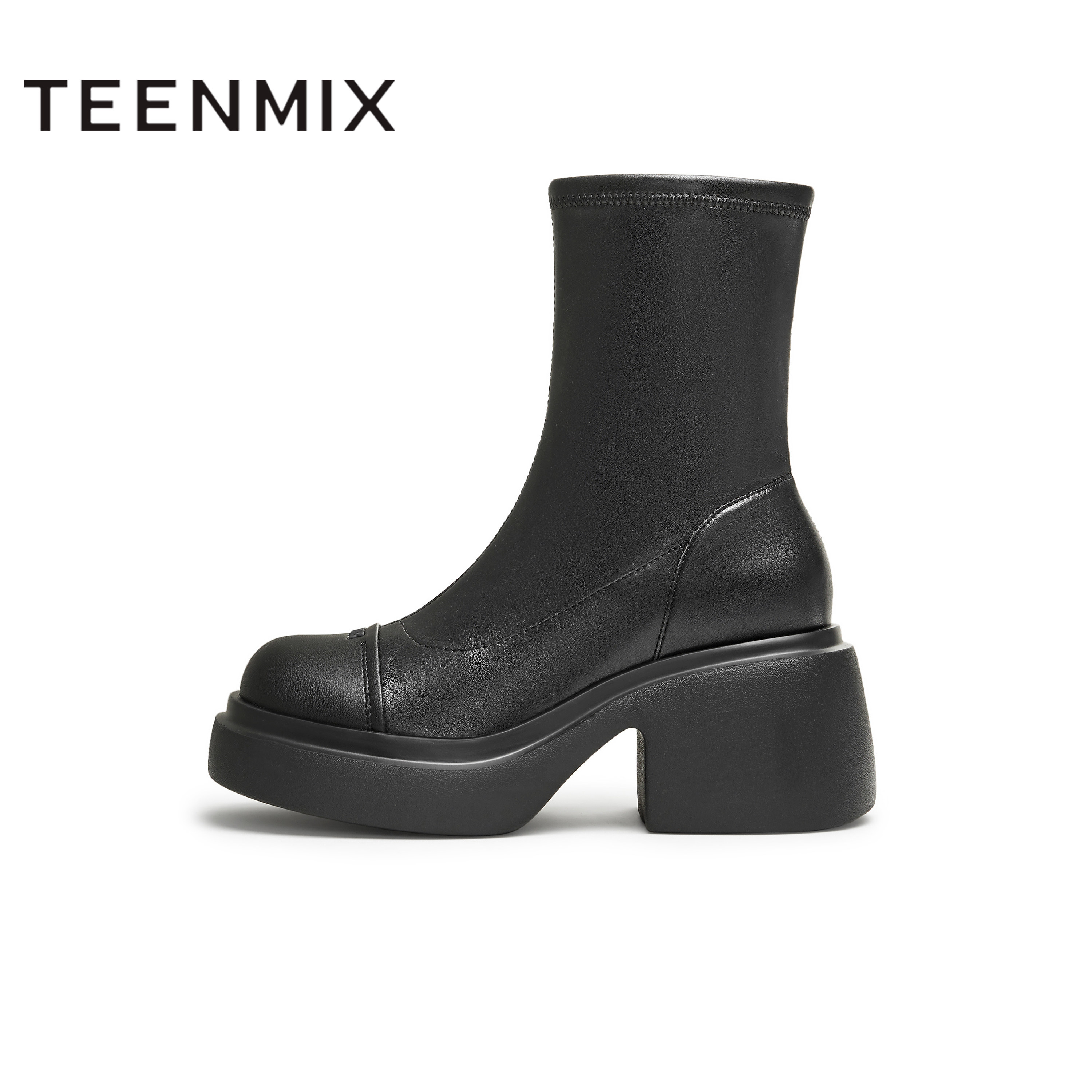 📚 天美意厚底增高加绒弹力靴时装靴女鞋子瘦瘦靴休闲短靴冬新款