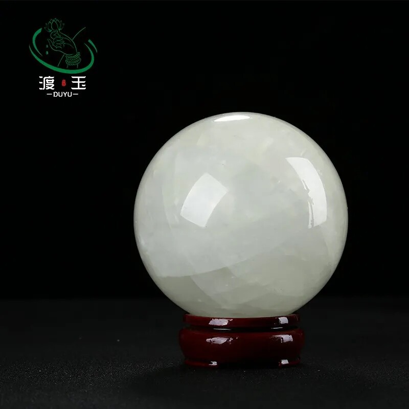 📚 精品冰洲石天然夜光石球有求必应白色萤光超亮水晶家居夜明珠摆件