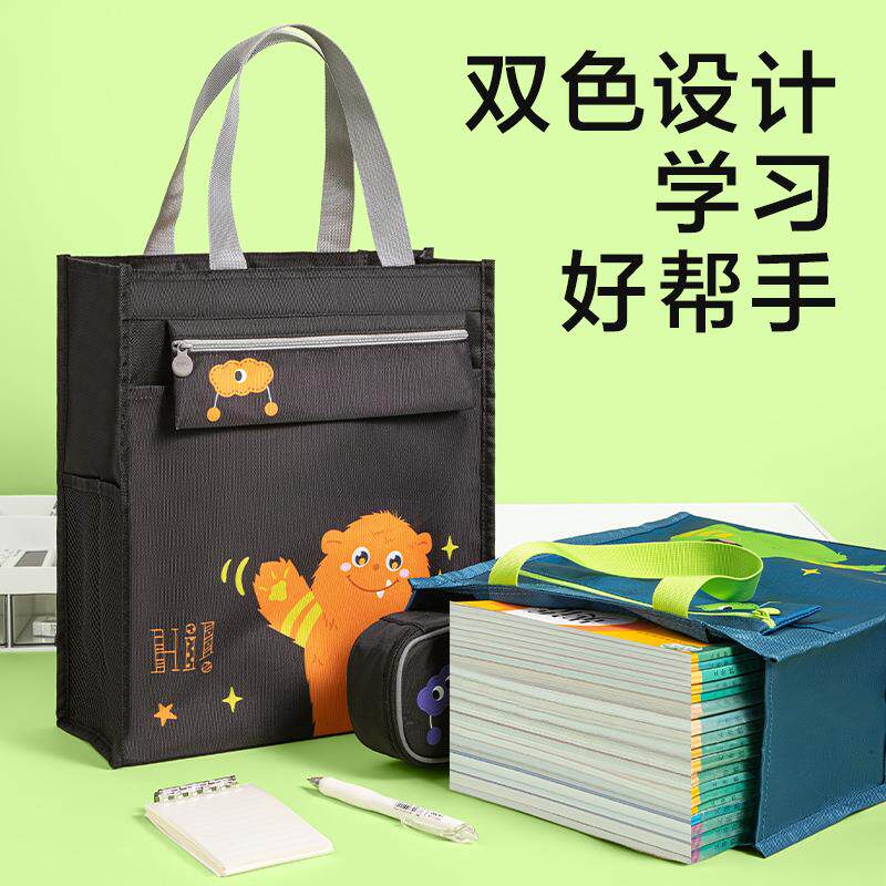 📚 得力卡通系列补习袋BA201小怪兽分区收纳袋可手提大容量补习袋子