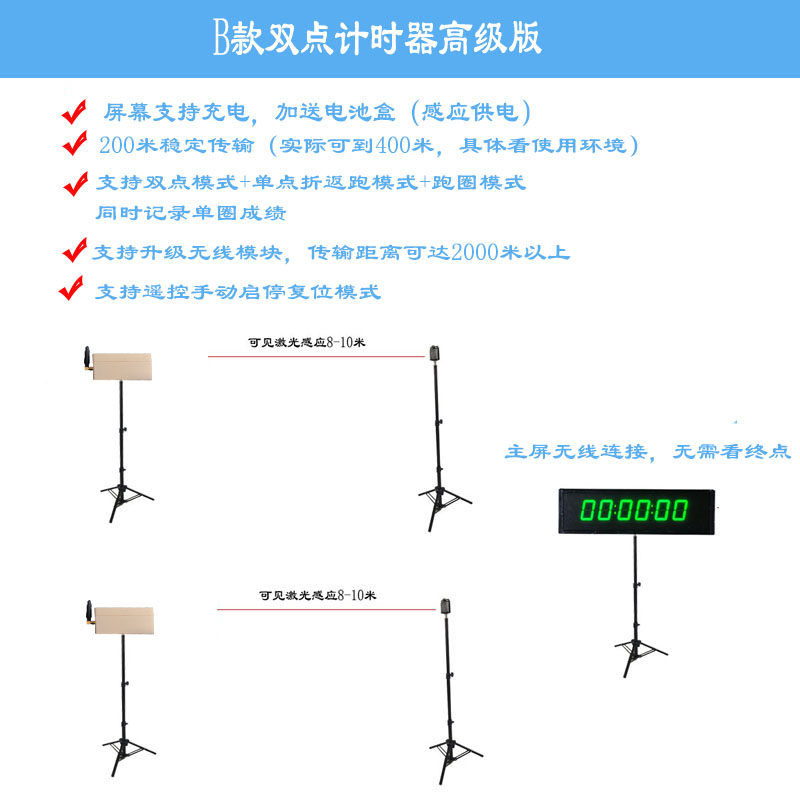 📚 无线红外激光计时器滑步车折返跑金卡纳百米短跑测试赛车5米三向