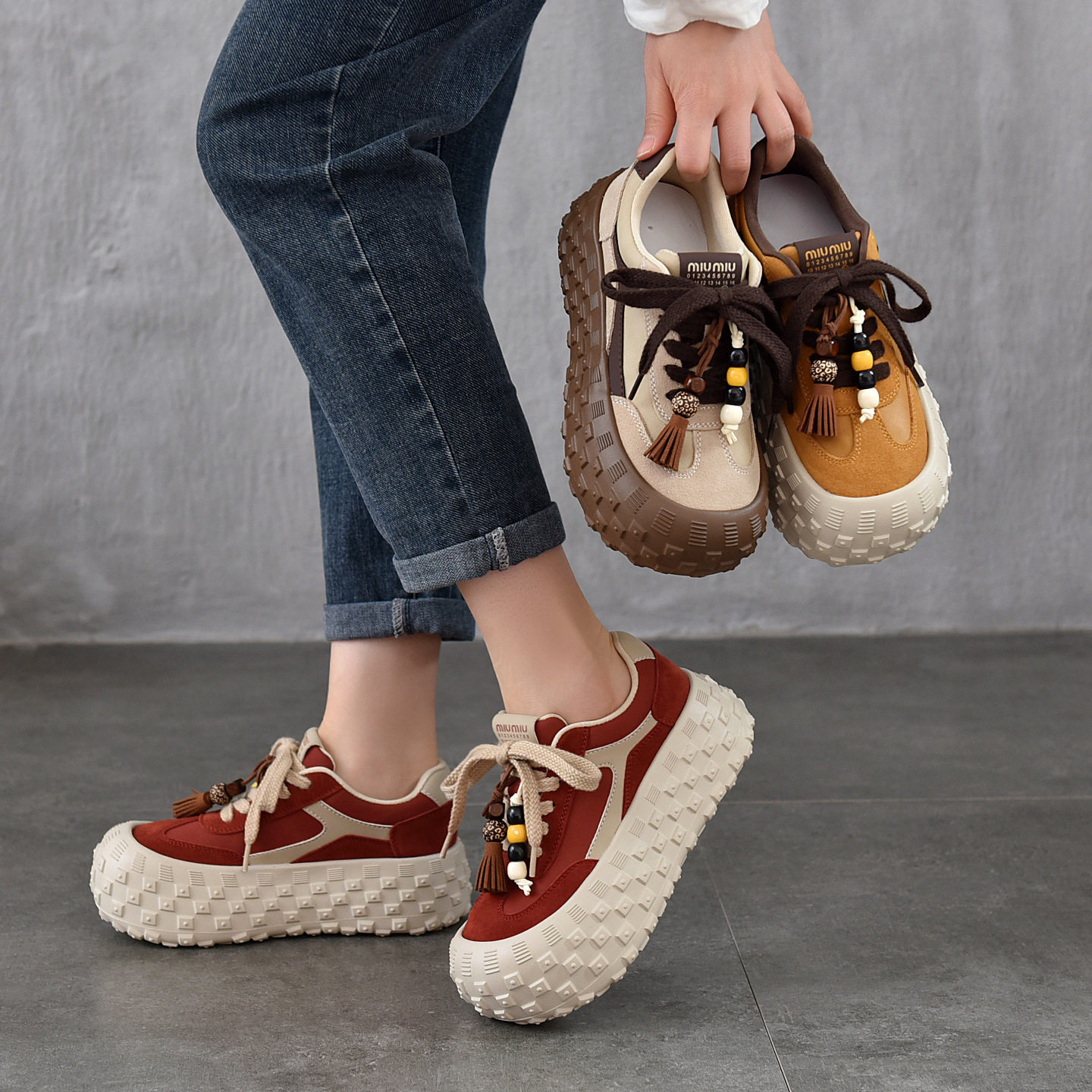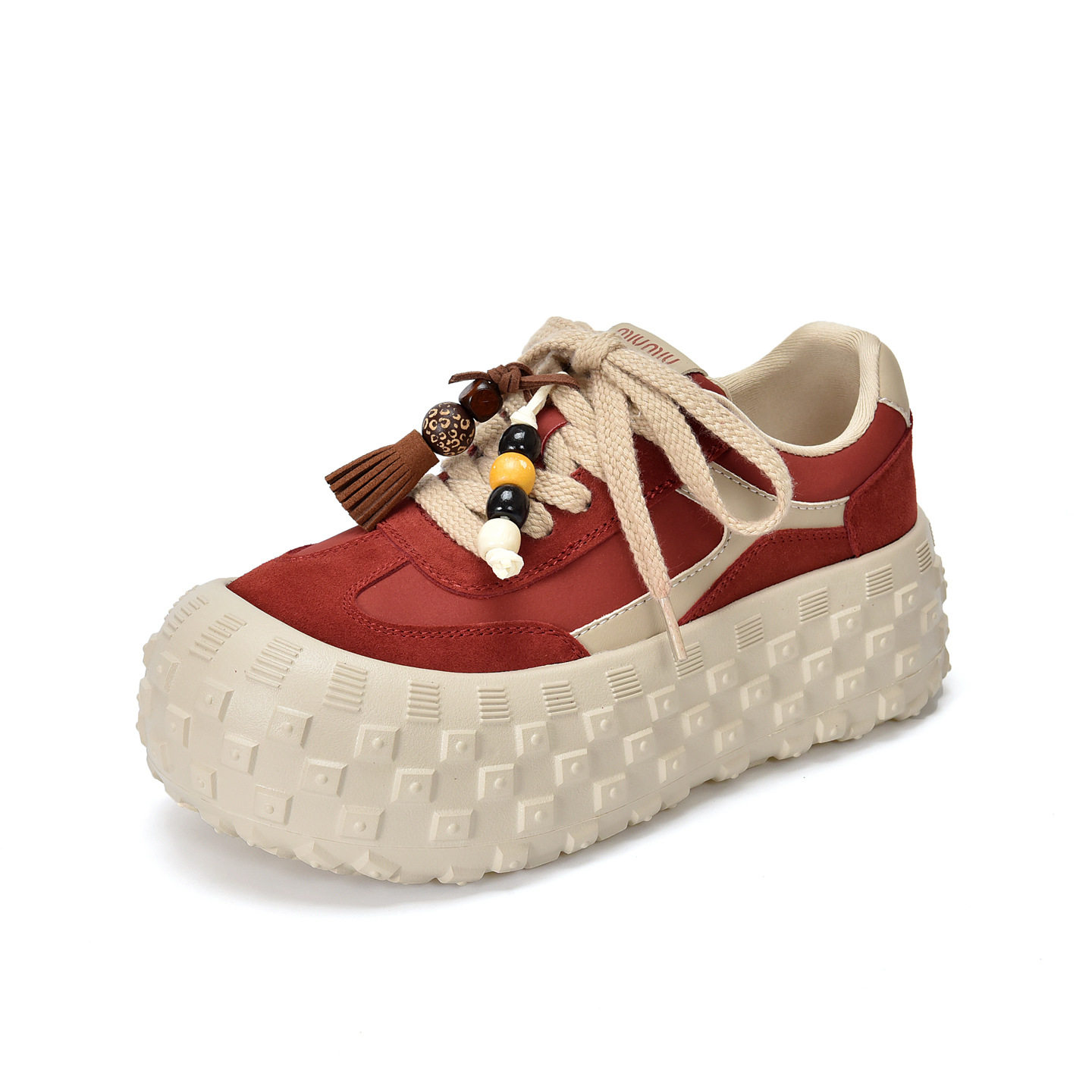 📚 2025秋新款真皮榴莲鞋小个子厚底松糕鞋增高个性休闲鞋女鞋老爹鞋