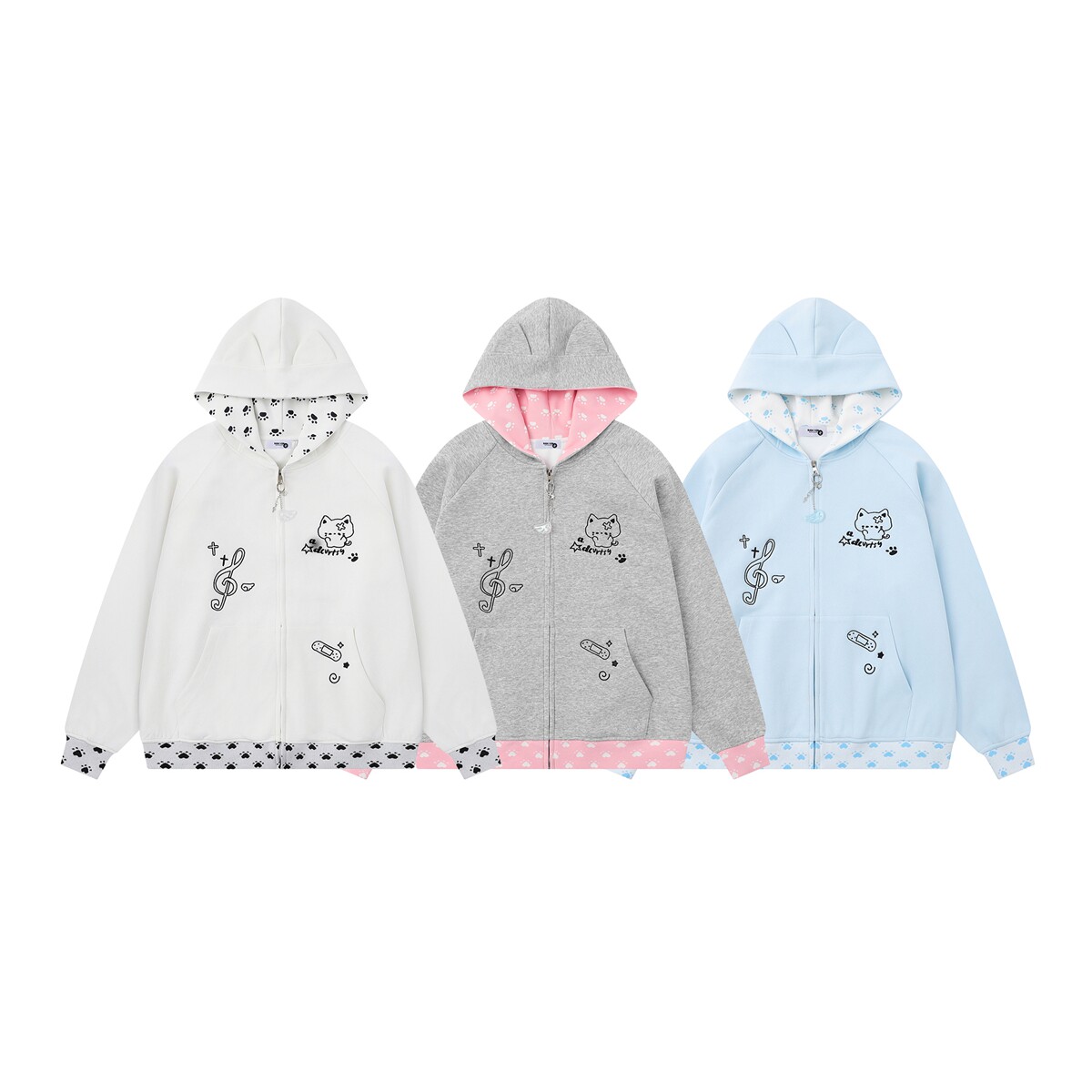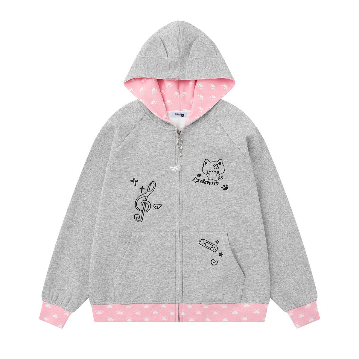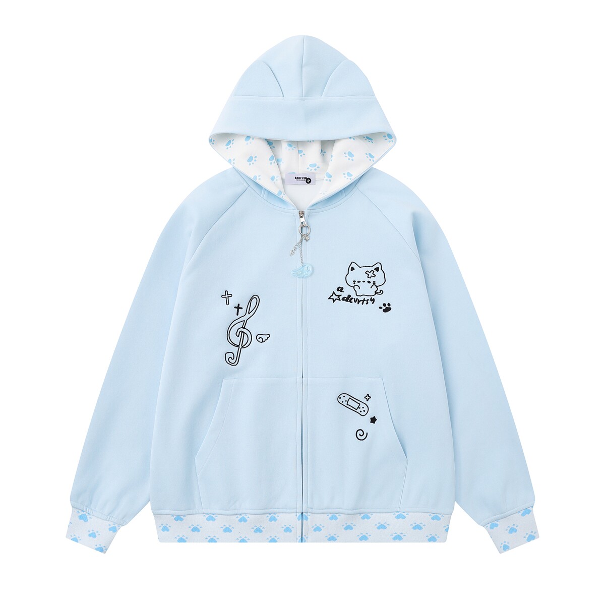 📚 MoCreation 可爱猫咪印花连帽卫衣女宽松春季情侣装拉链开衫外套