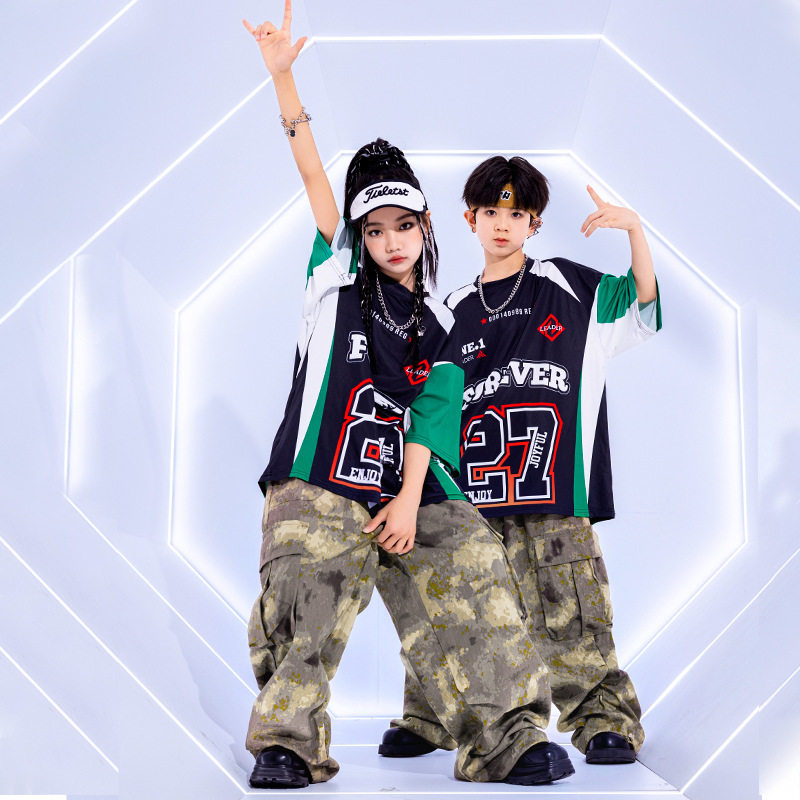 📚 儿童bboy街舞夏季套装男童演出服帅气工装裤女孩hiphop酷炫迷彩裤