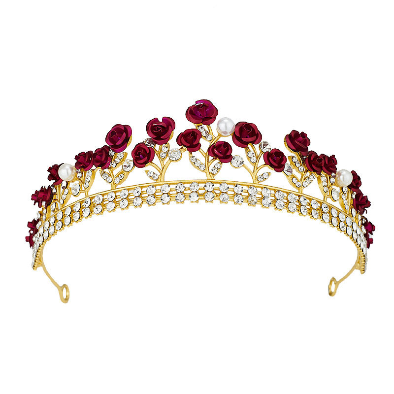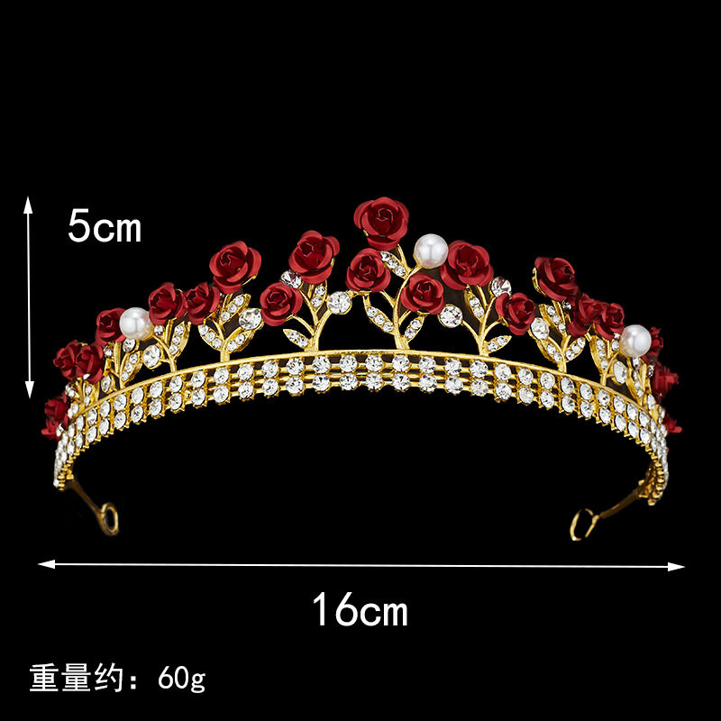 📚 Bridal Crown Engagement Baroque Women's Crown Red Rose Brid