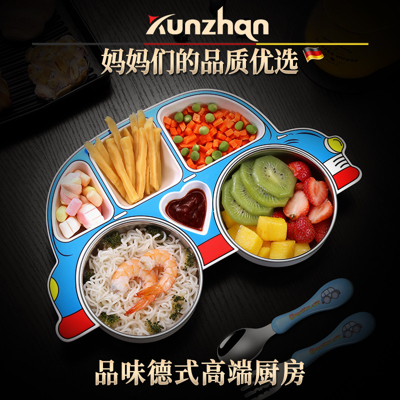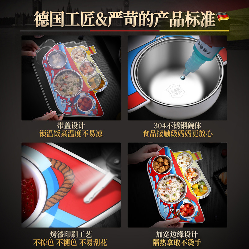 📚 304不锈钢宝宝婴儿童餐盘分格辅食男孩餐具套装卡通吃.饭盒专用小