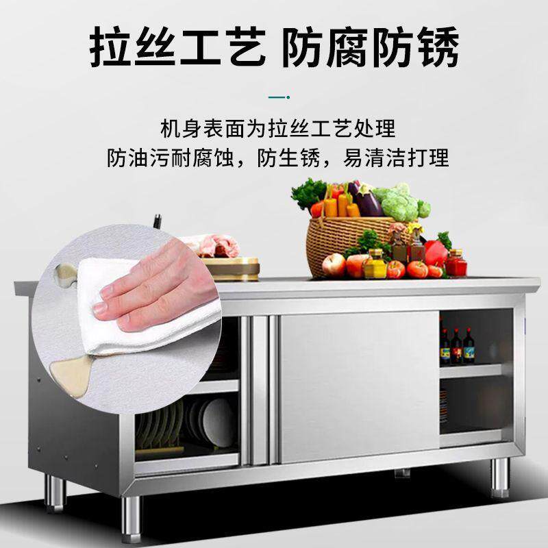 📚 焊接不锈钢工作台操作厨房台面储物柜商用烘焙切菜桌子带拉门案板