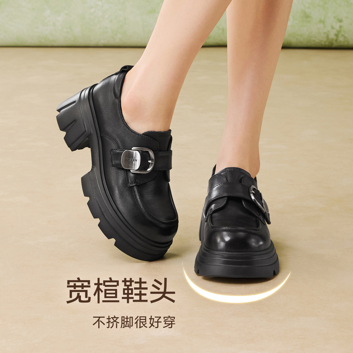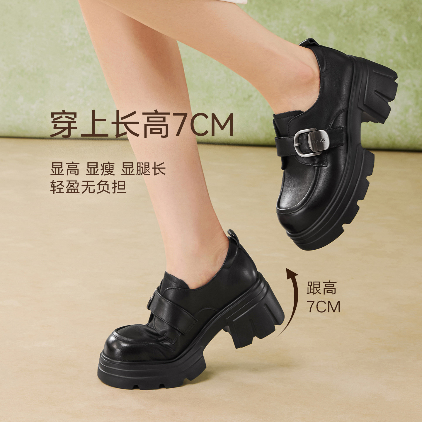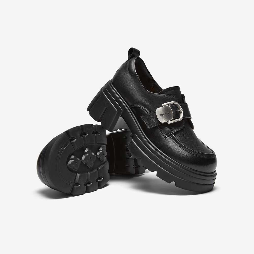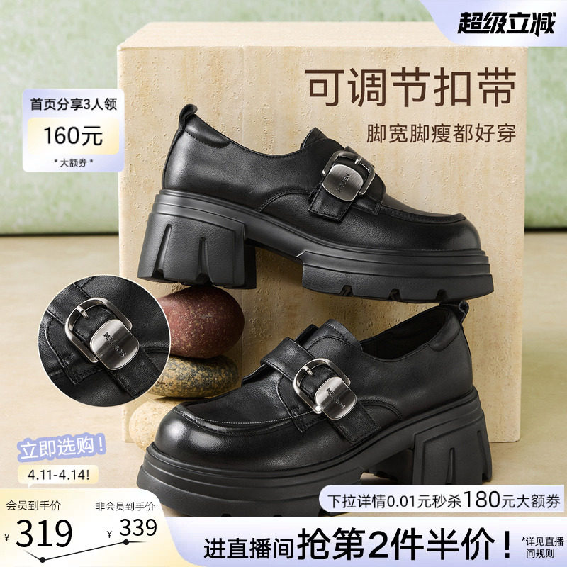 📚 百思图2026春季商场新款牛皮厚底粗跟乐福鞋小皮鞋女单鞋CS583AM6