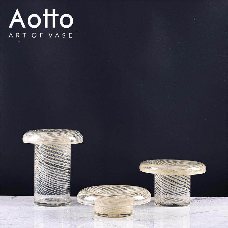 📚 现代简约创意瓶纹玻璃条花样板间客厅台面饰设计感装花器OHV5068-