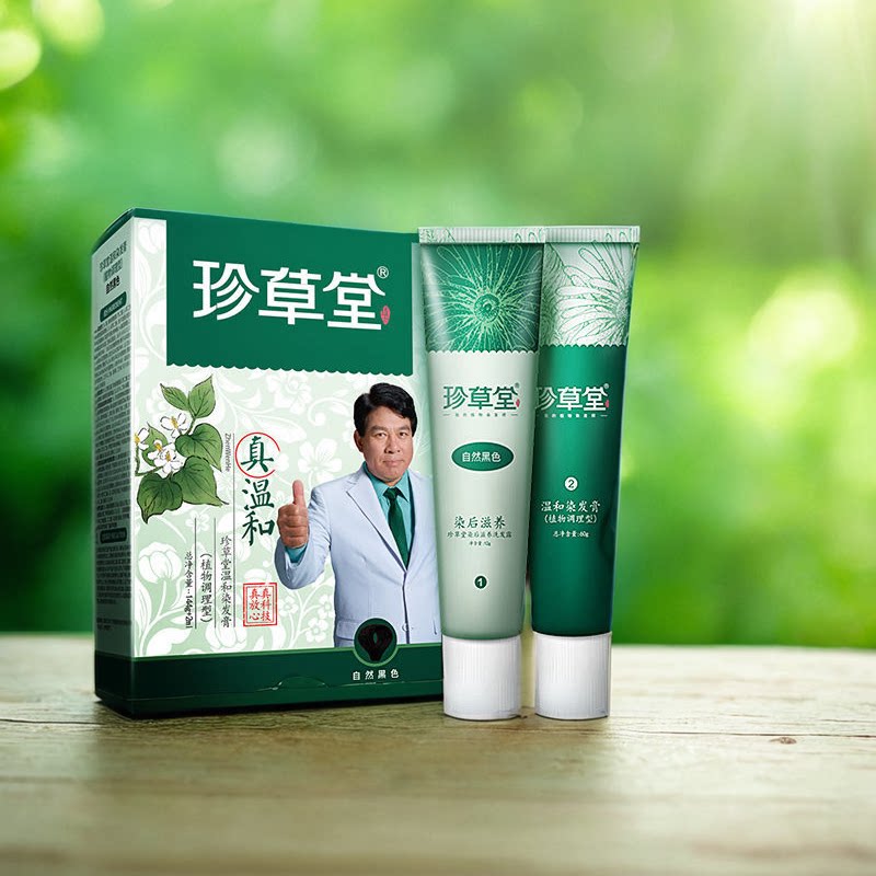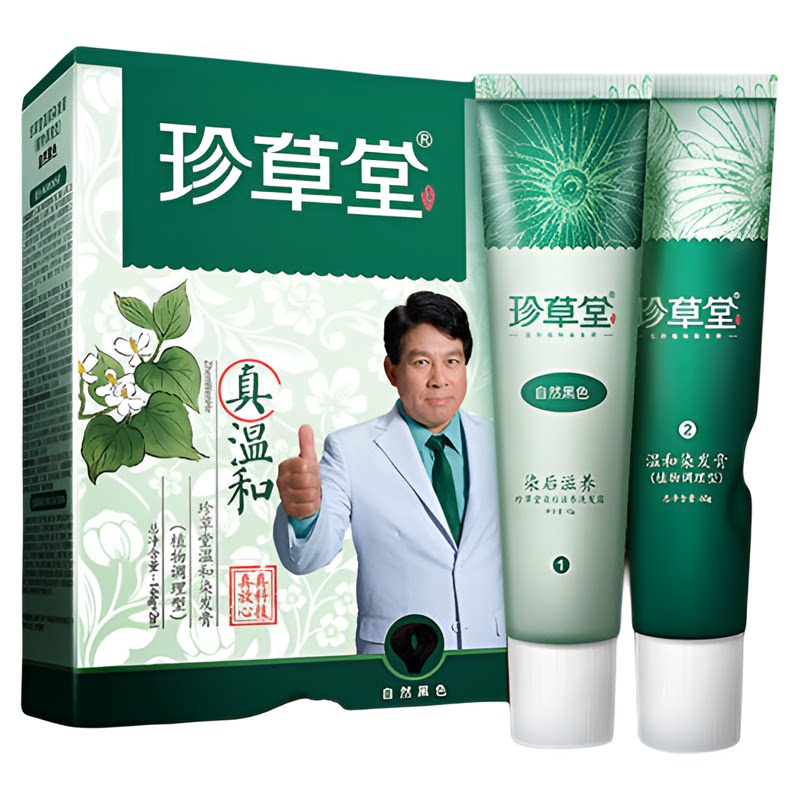 📚 珍草堂染发剂纯正品植物天然护发染发膏黑色栗棕色焗油膏自然养发