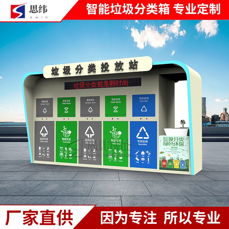 📚 智能垃圾分类箱社区洗手池收集亭站感应开门四投口垃圾箱厂家定做