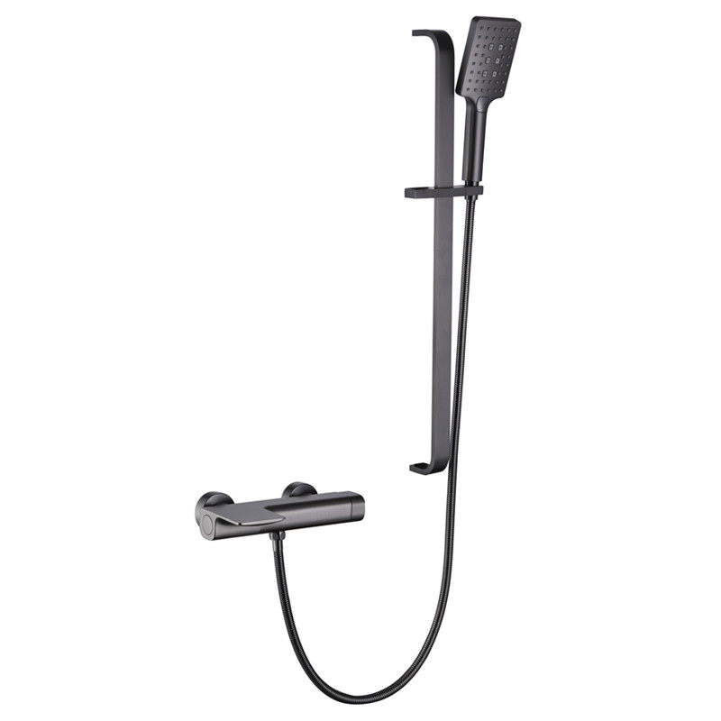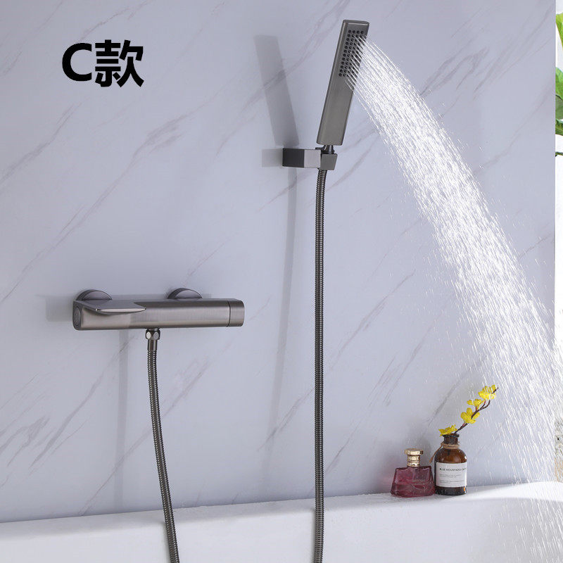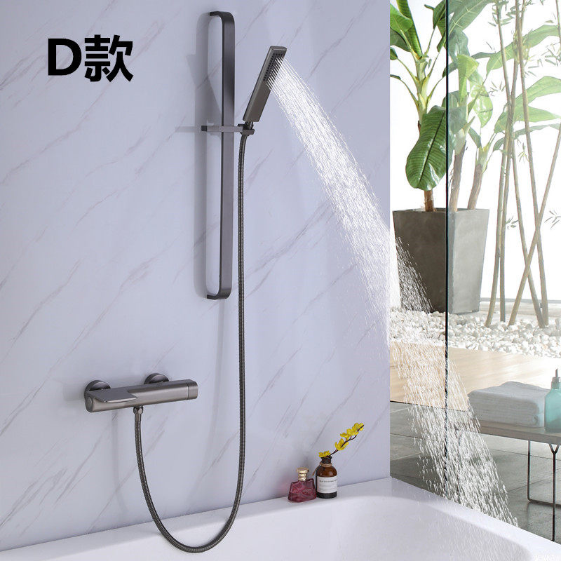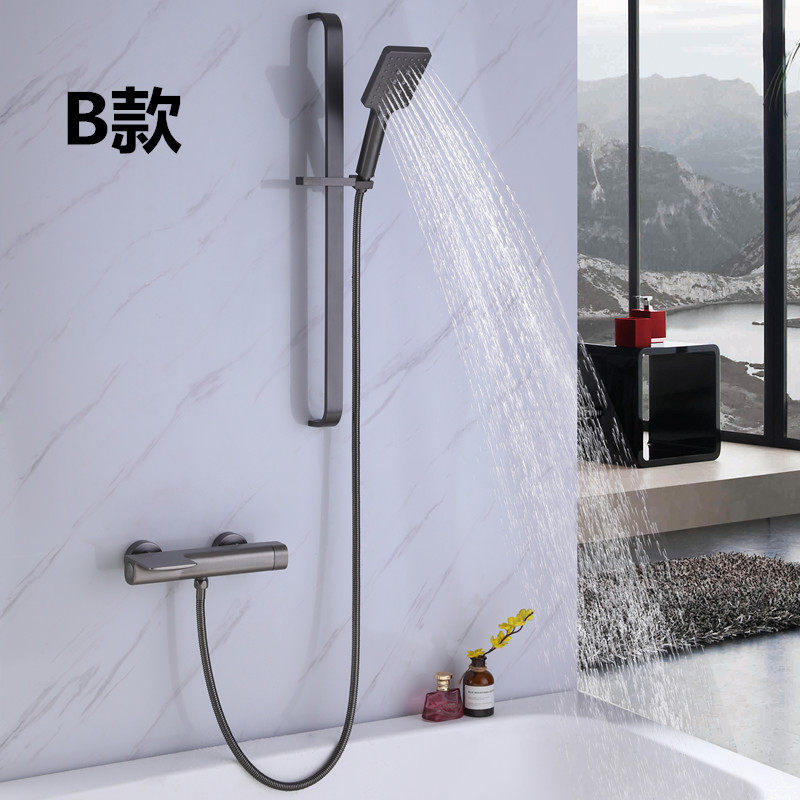 📚 德国枪灰色花洒套装卫生间浴缸瀑布冷热水龙头全铜增压升降淋浴器