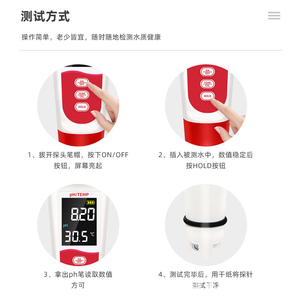 📚 Water Quality Analyzer Temperature pH 2-in-1水质测试笔
