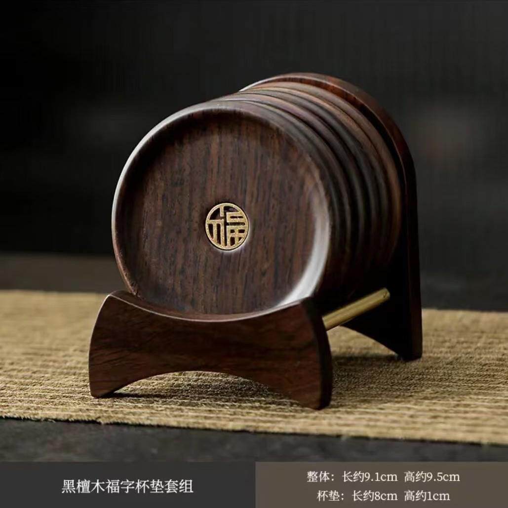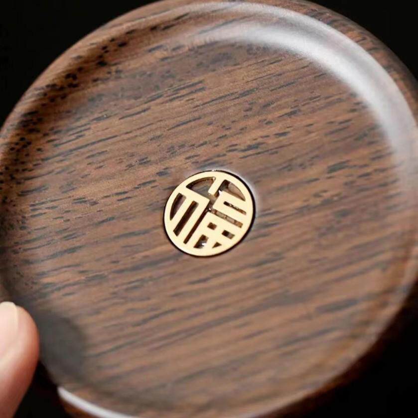 📚 杯圆形垫垫防结合黑檀木创意木茶托杯家用垫垫烫茶杯木质铜
