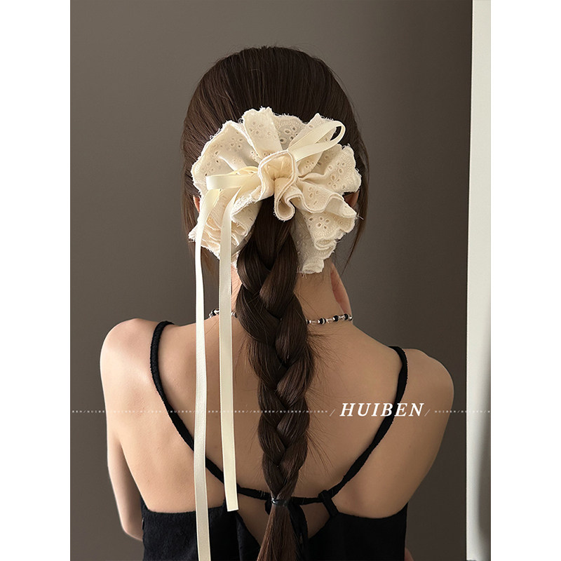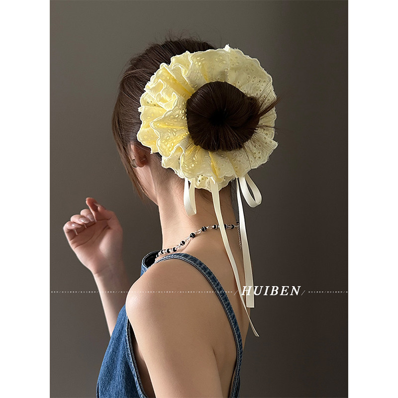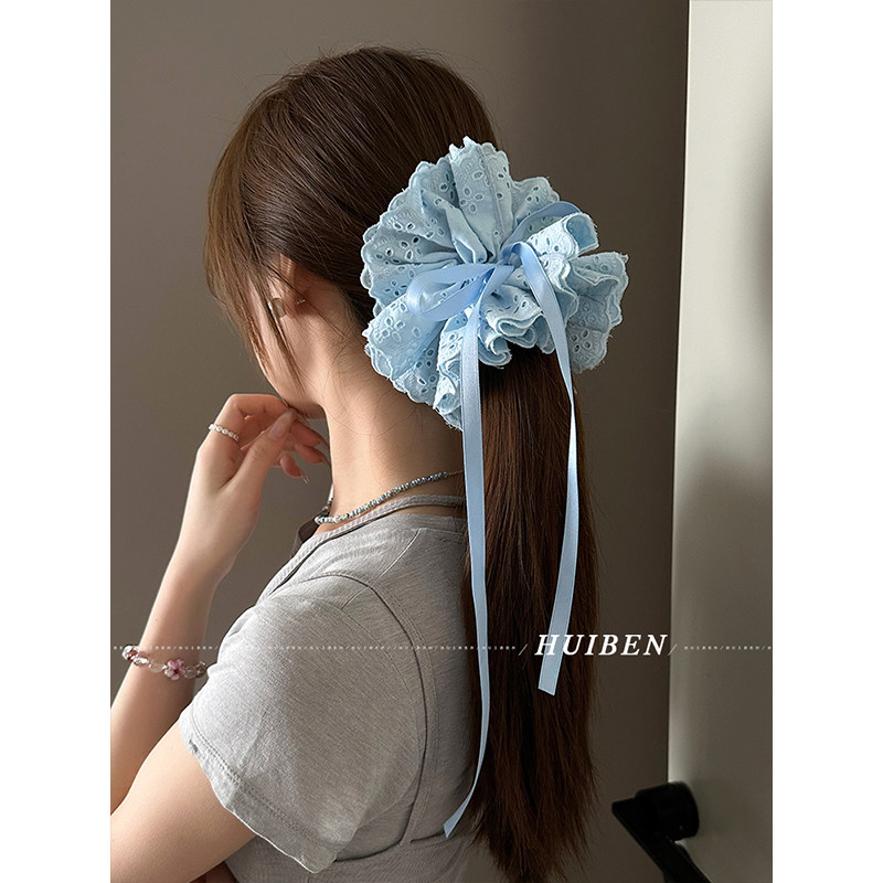 📚 度假风~甜美抽拉式蕾丝发圈女高级感马尾头绳显白氛围芭蕾风发绳