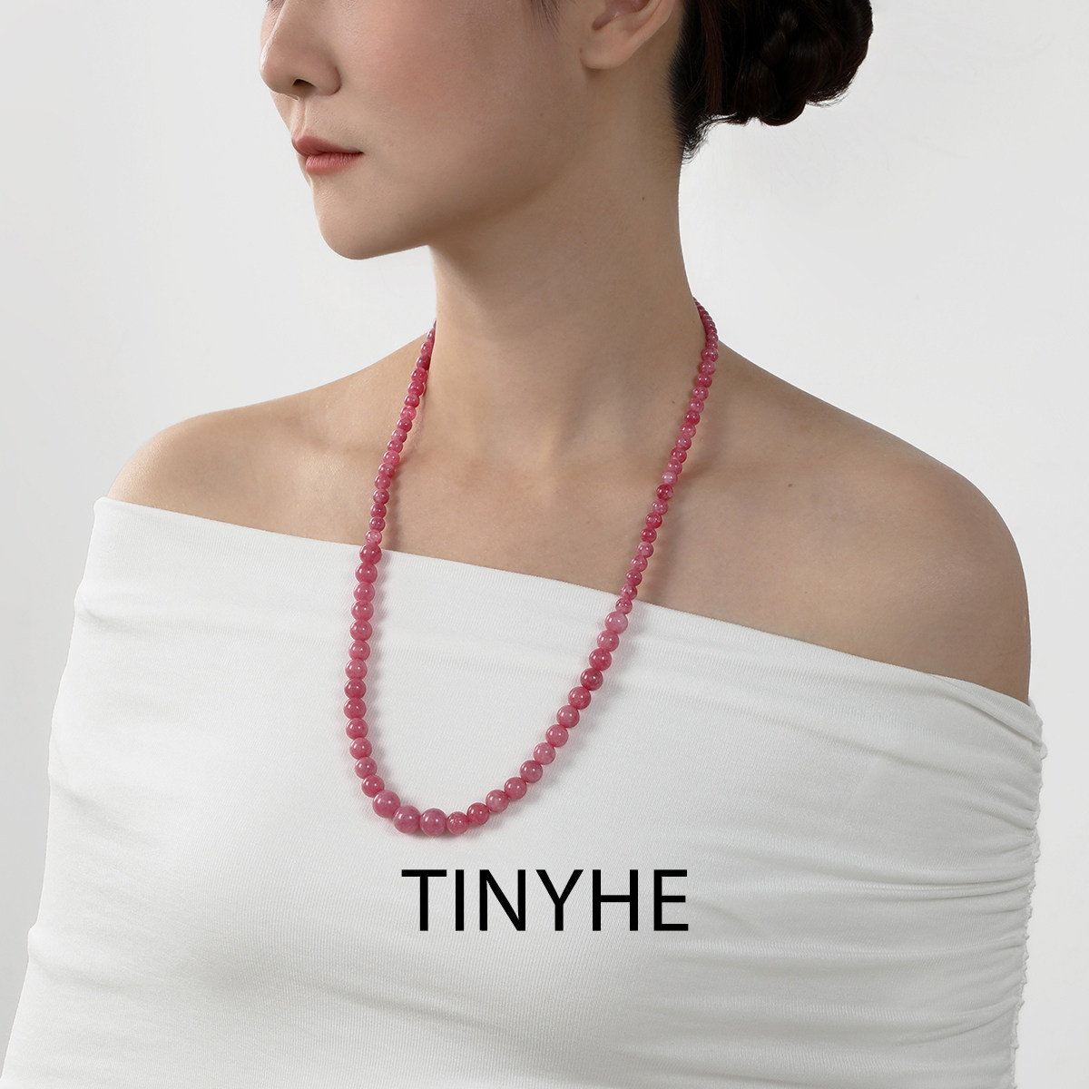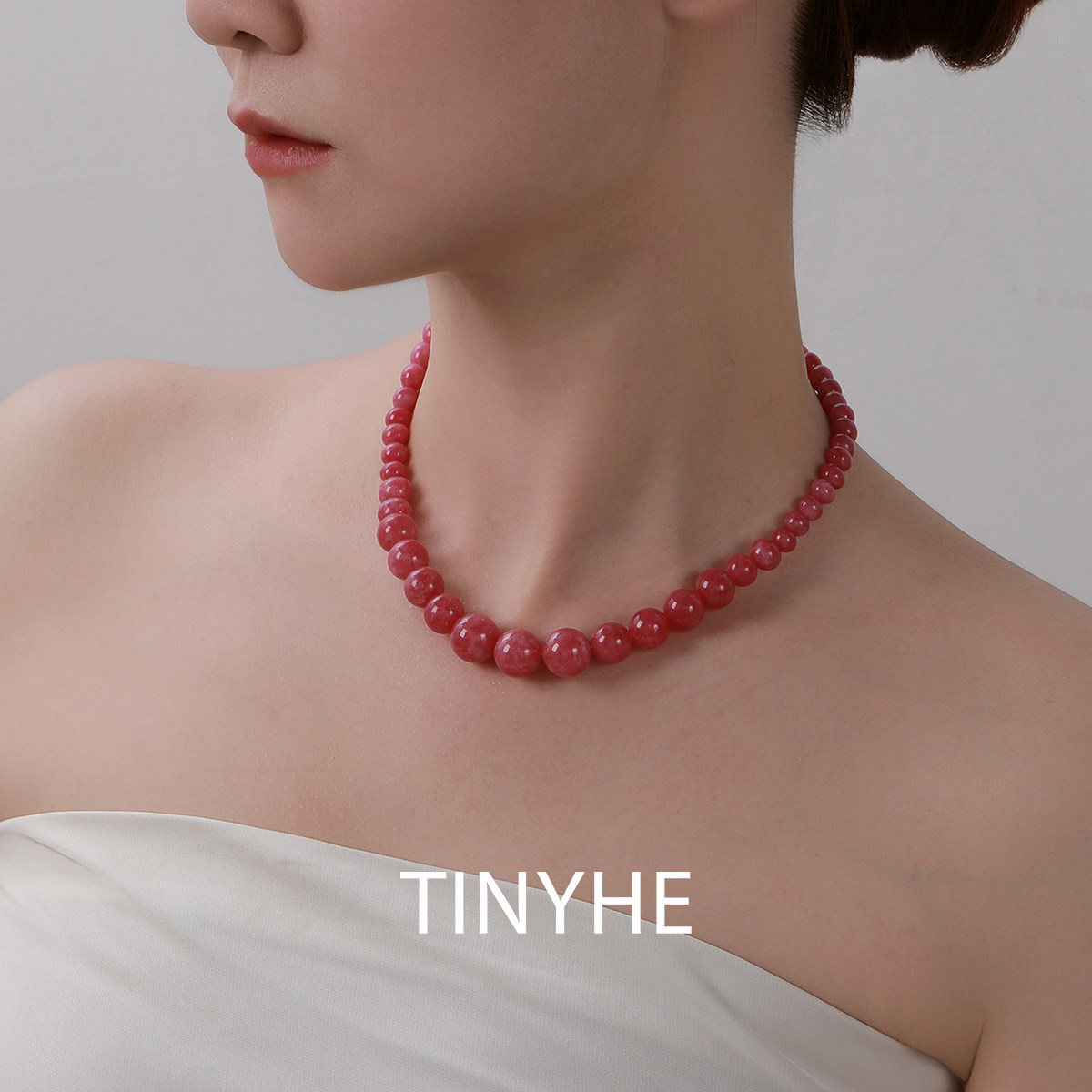 📚 S925纯银蔷薇石项链女粉色水晶串珠锁骨链秋冬毛衣链轻奢小众颈链