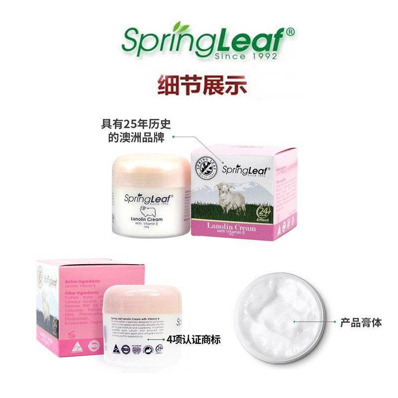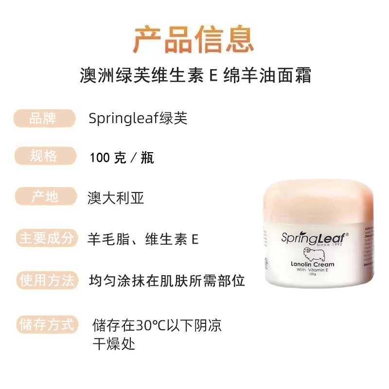 📚 【品牌授权】澳大利亚SpringLeaf绿芙维生素E绵羊油VE面霜100g