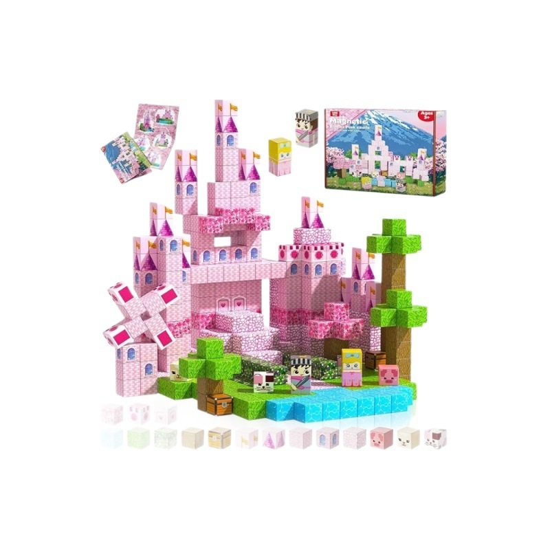 📚 亚马逊爆款MagneticBuilding磁力方块积木益智3D粉色城堡女孩玩具