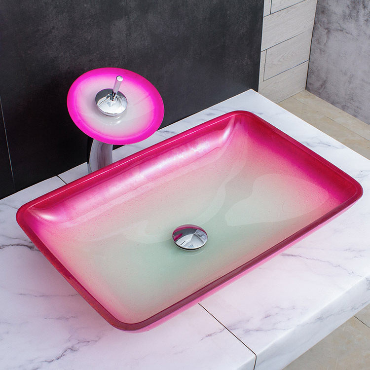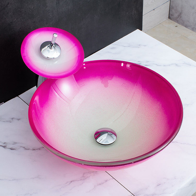 📚 钢化玻璃洗手盆 洗脸盆艺术台上盆洁具套装washing basin家用外贸
