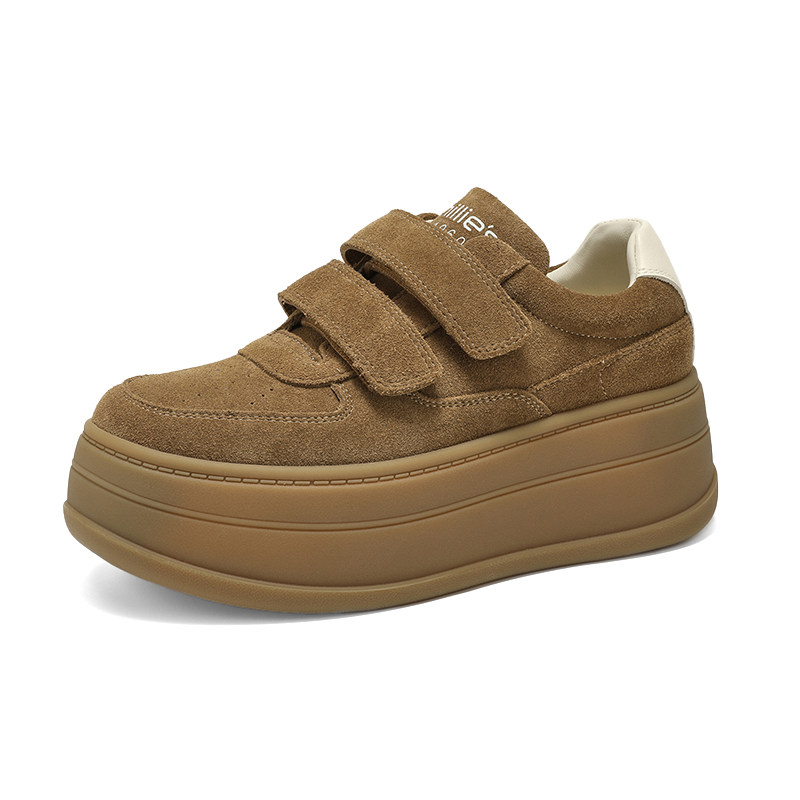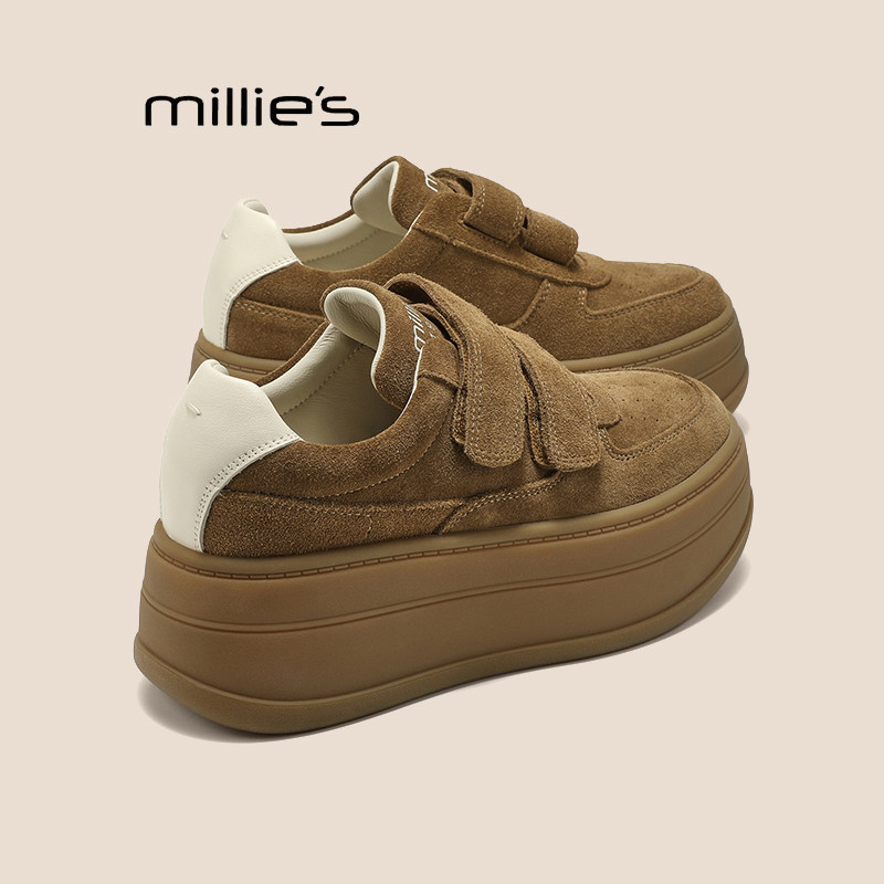 📚 MILLIE'S/妙丽2026秋季新款真皮厚底圆头魔术贴增高潮流板鞋P