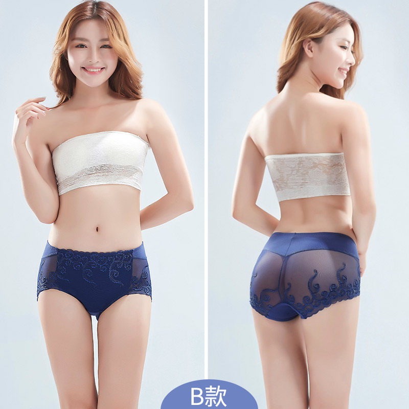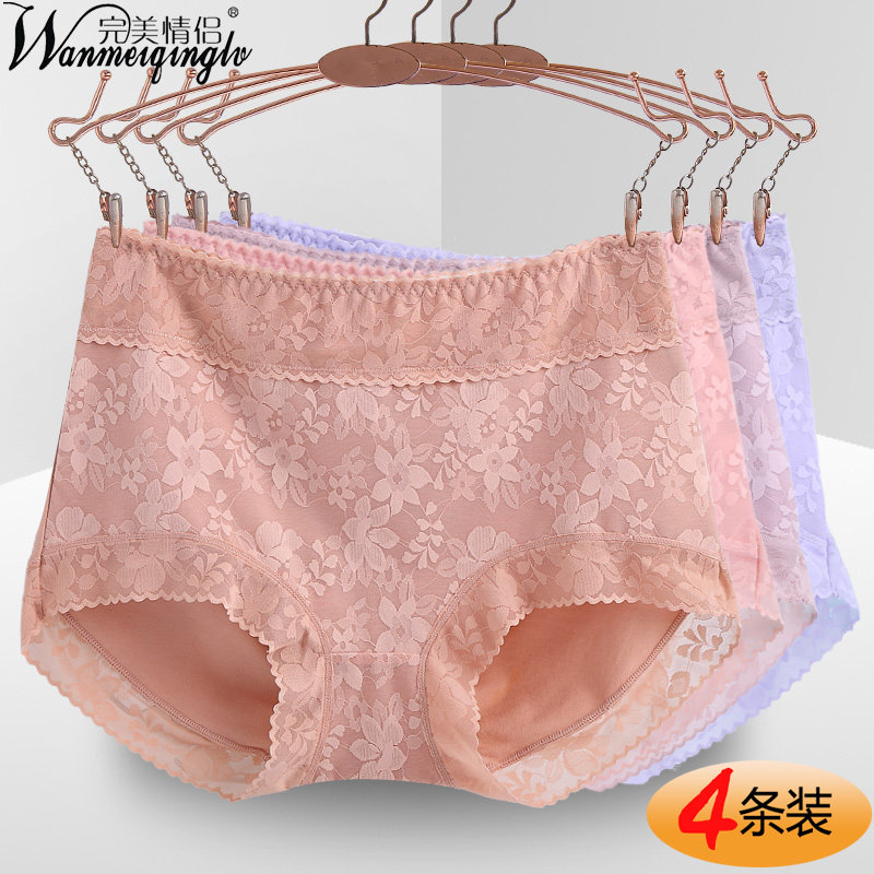纯棉收腹内裤女士性n感蕾丝中腰包臀平角性惑薄款少女高腰大码夏