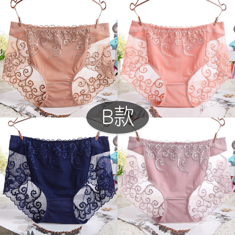 📚 纯棉收腹内裤女士性n感蕾丝中腰包臀平角性惑薄款少女高腰大码夏