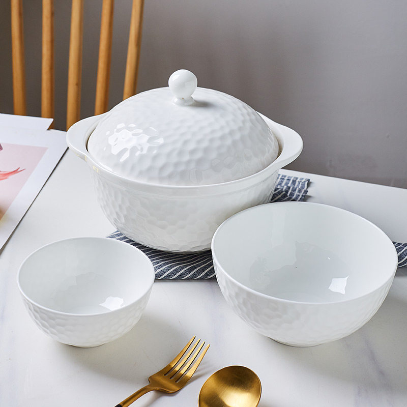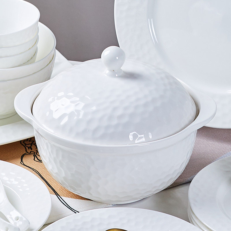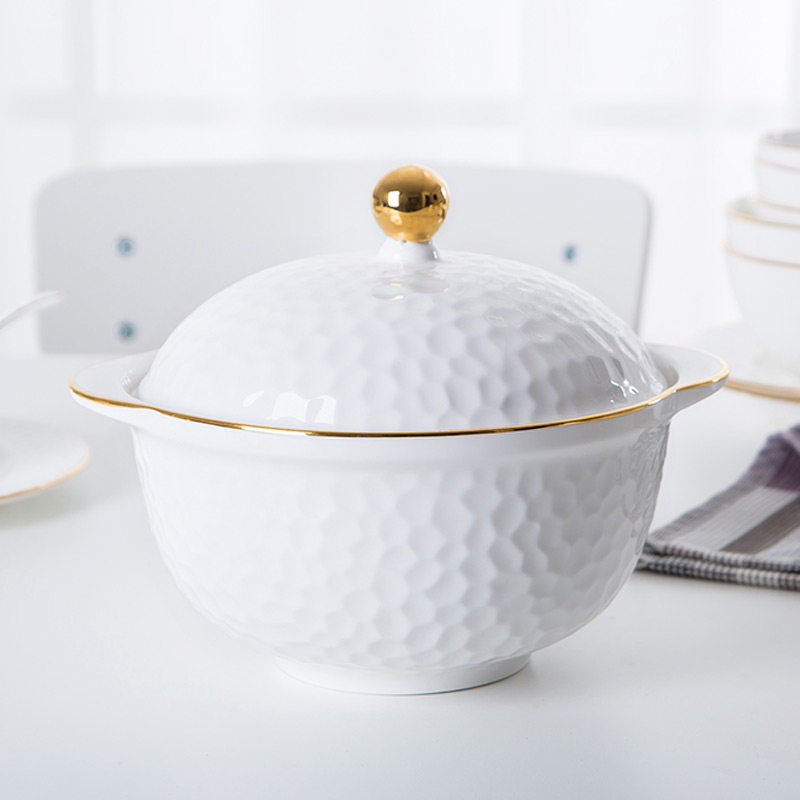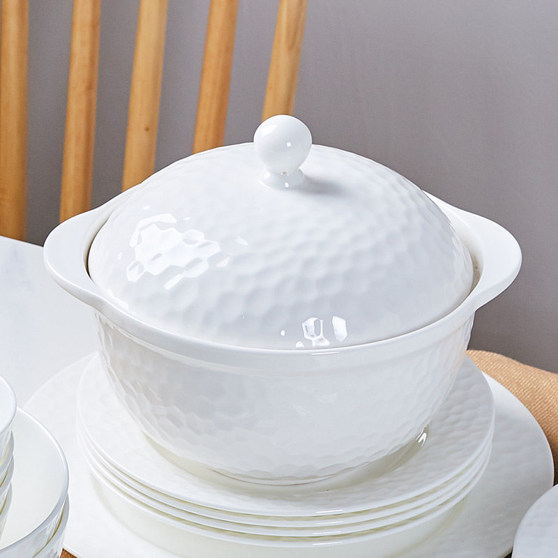 📚 景德镇骨瓷餐具中式带盖汤碗创意陶瓷碗家用大号品锅家用带盖汤锅