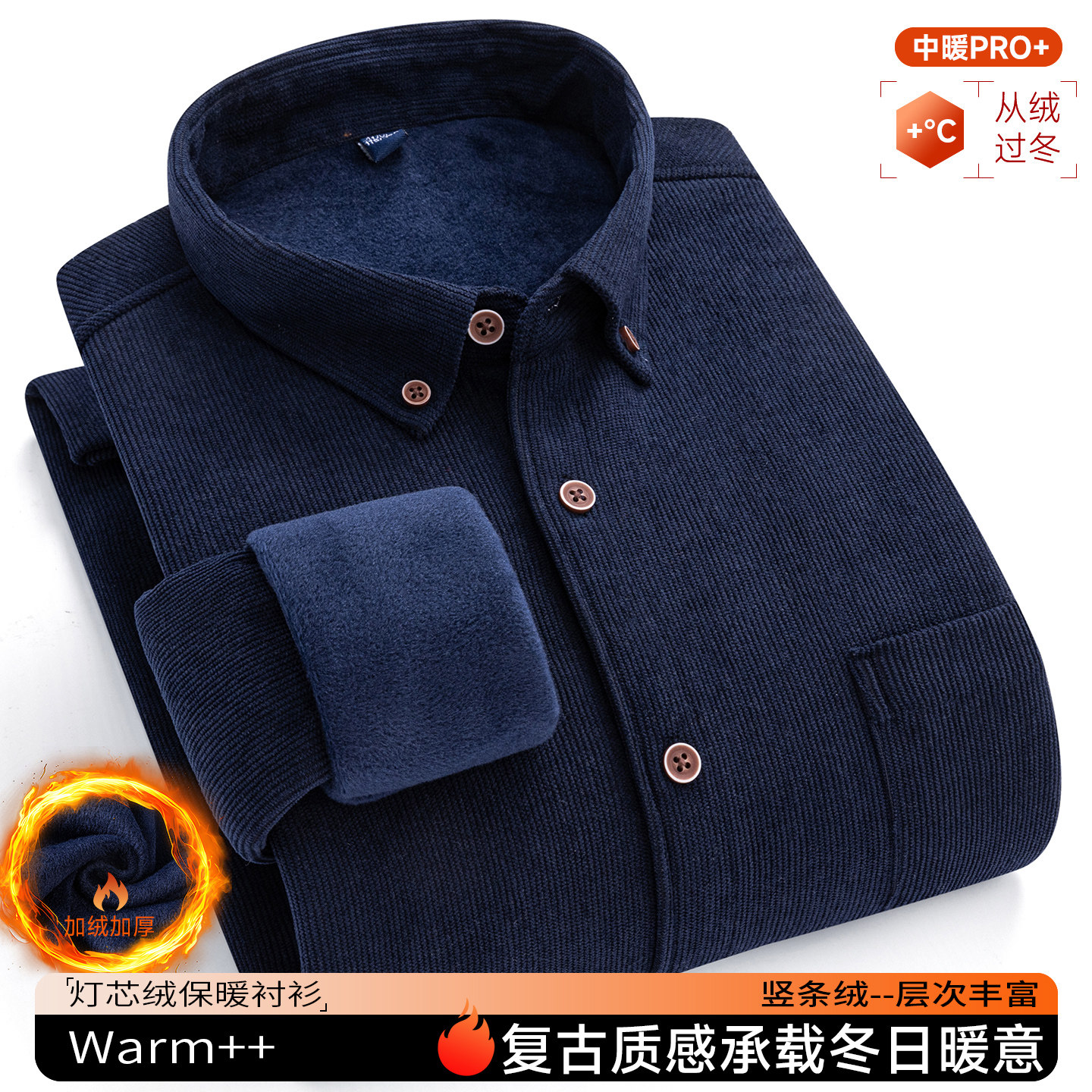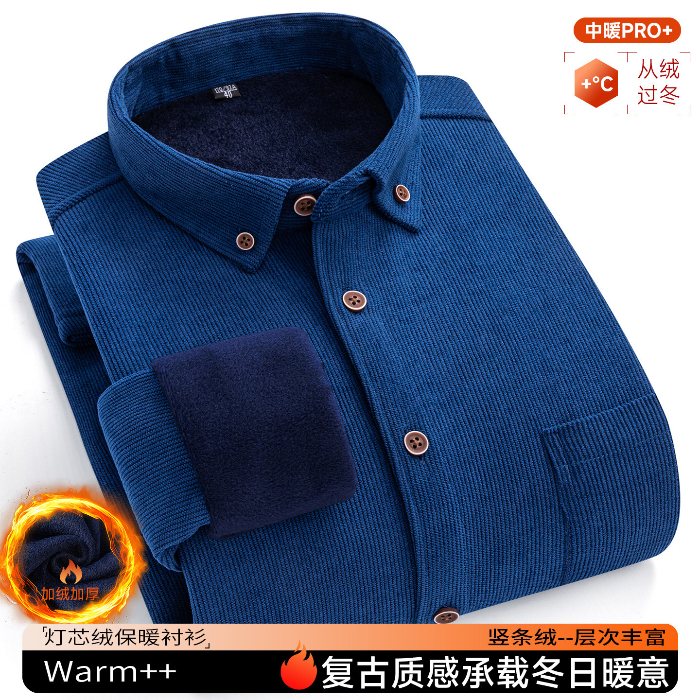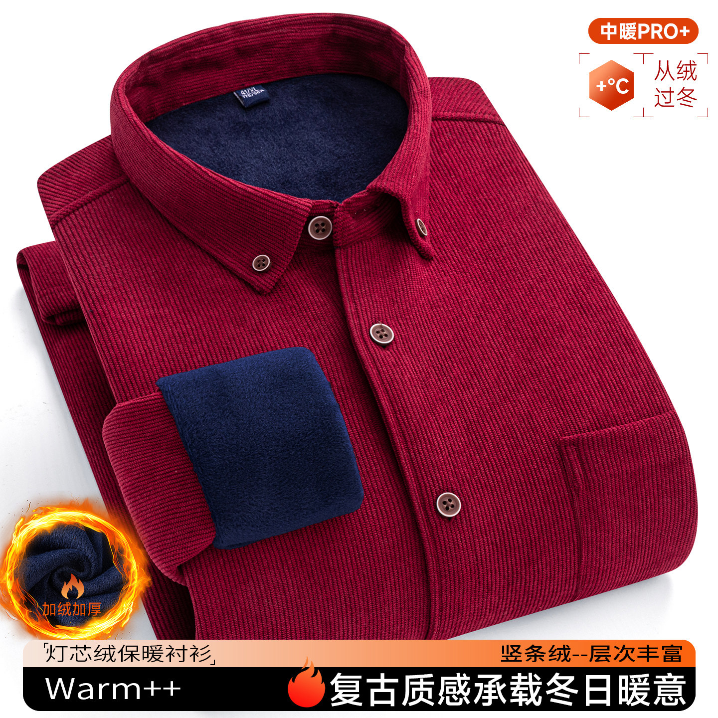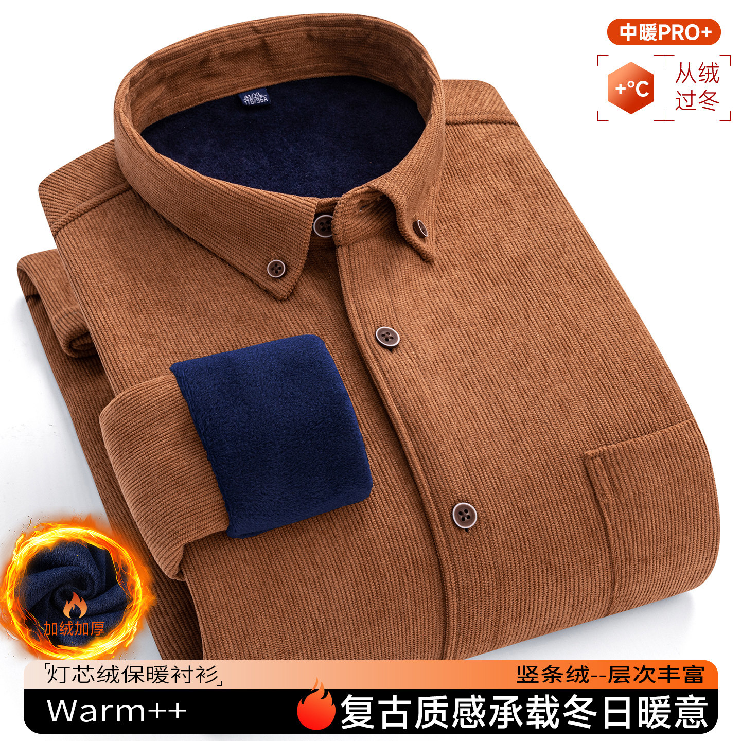 📚 保罗冬季男士灯芯绒保暖长袖衬衫中老年条绒加绒加厚加大码爸爸装