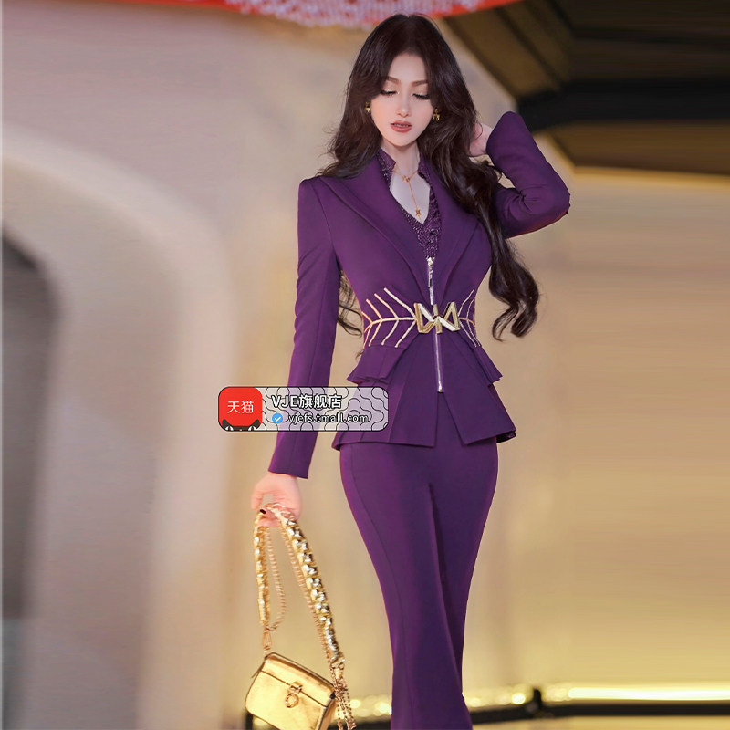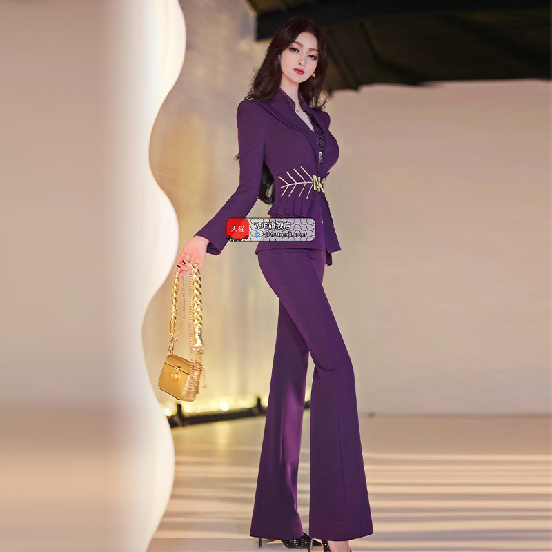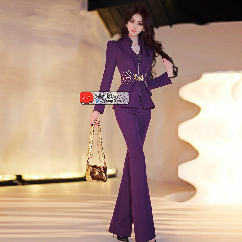 📚 VJE秋季商务西装套装新款气质修身小西服外套微喇叭裤两件套