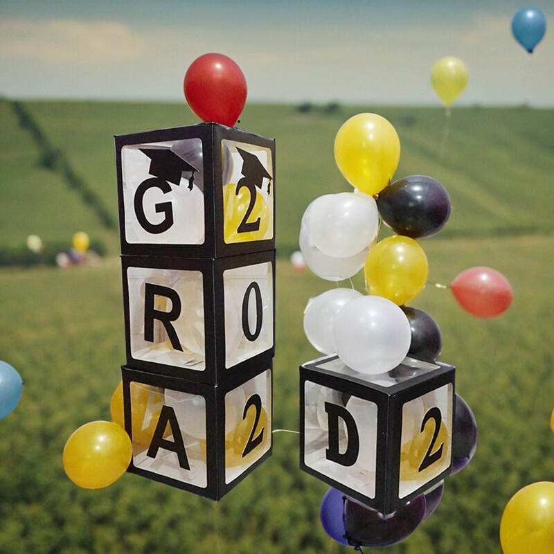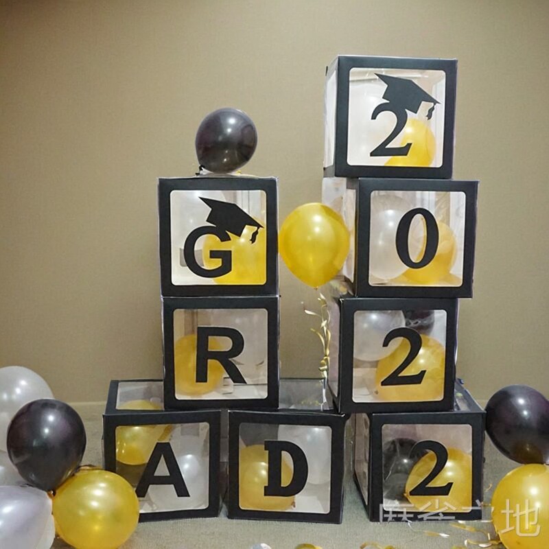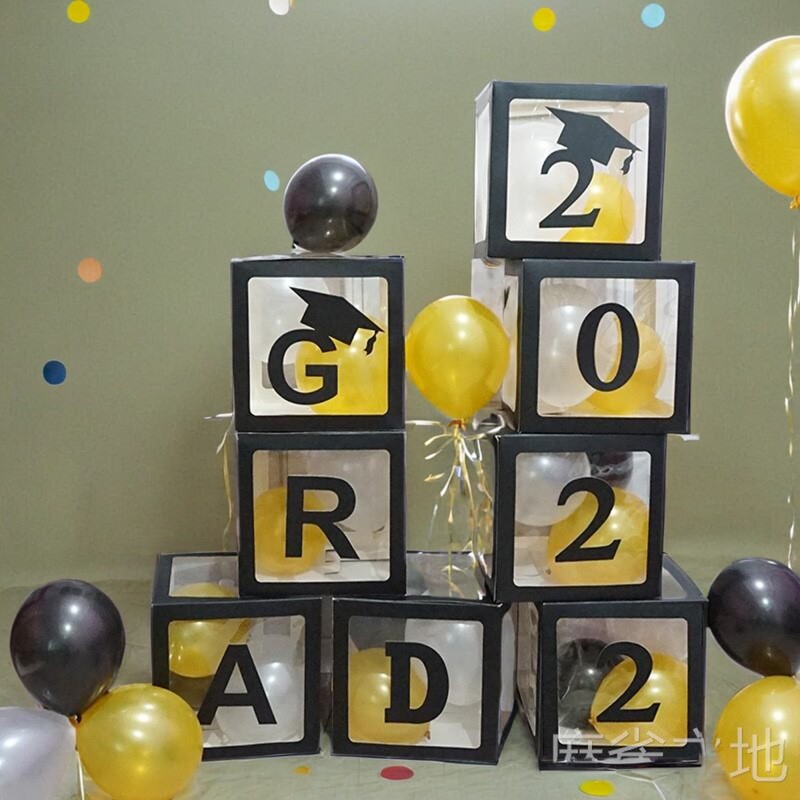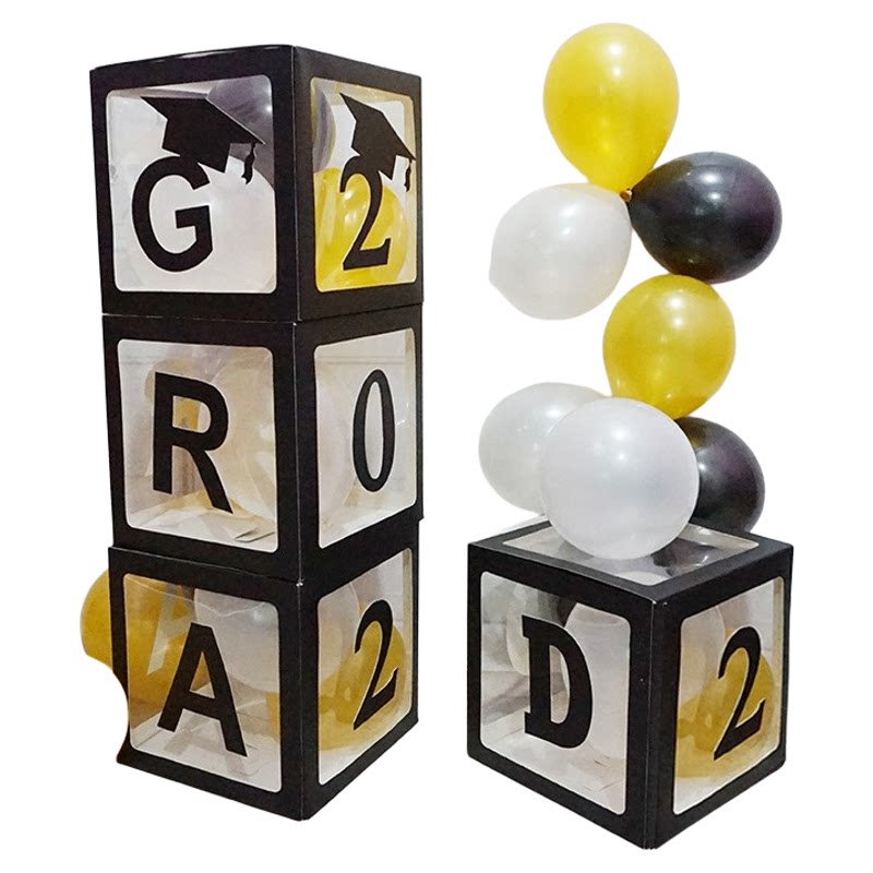 📚 GRAD毕业典礼装饰气球盒黑色字母方块纪念用品祝贺气氛派对布置