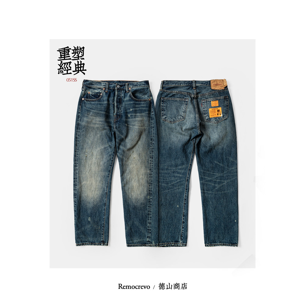 📚 REMOCREVO超级复古旧化水洗051SS招牌直筒牛仔裤男丹宁长裤
