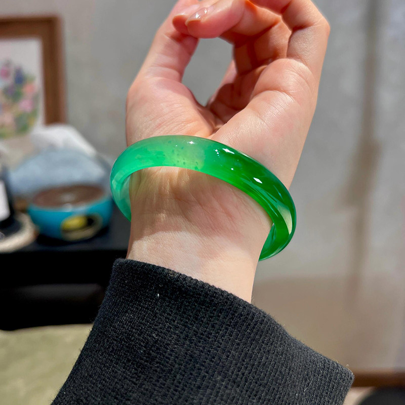 📚 仟喜梵"苔香萍润"翡翠平替石英岩帝王绿女款玉手镯子正品玉石处理