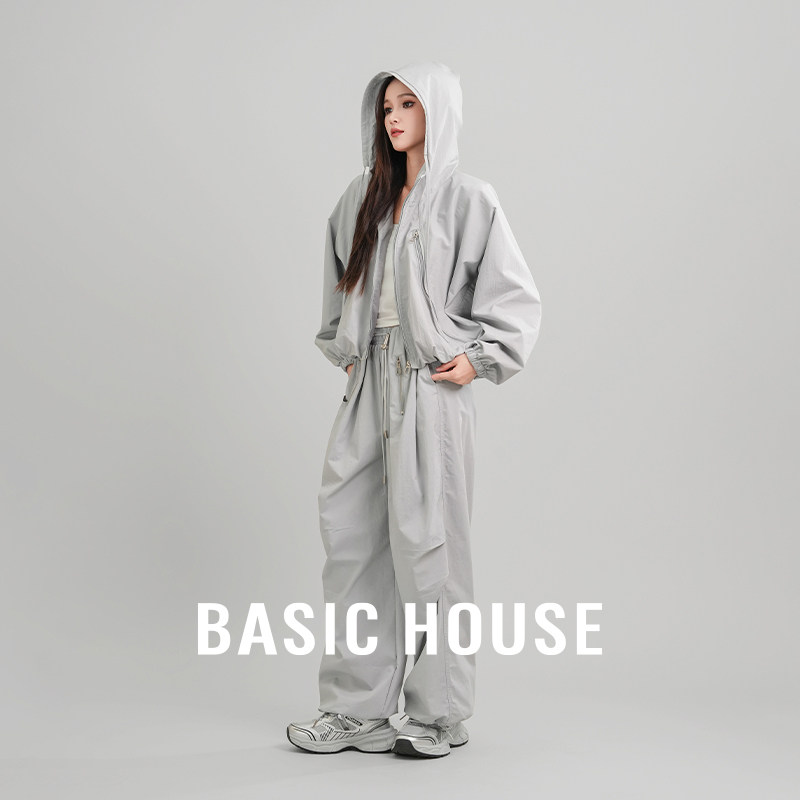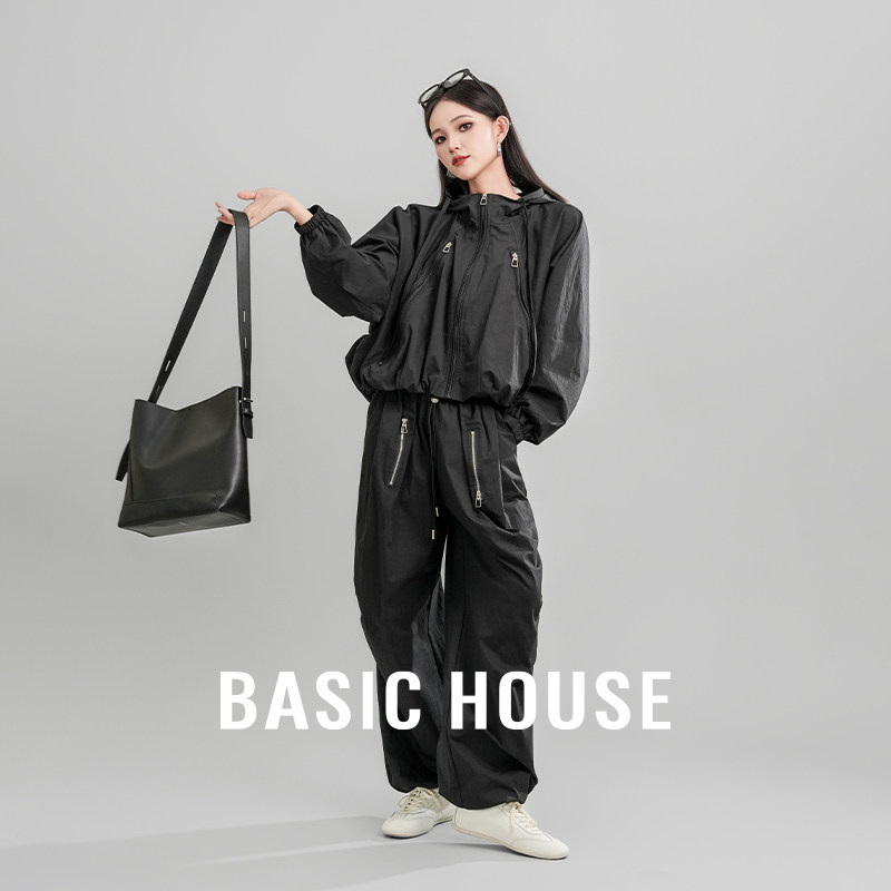 📚 Basic House/百家好连帽外套休闲慵懒风时尚阔腿裤两件套女装2026