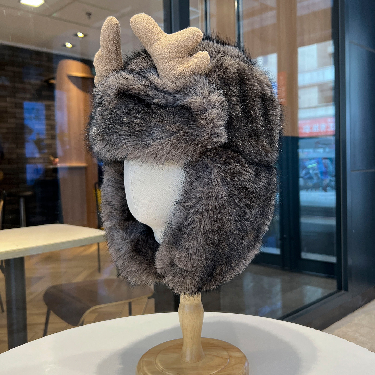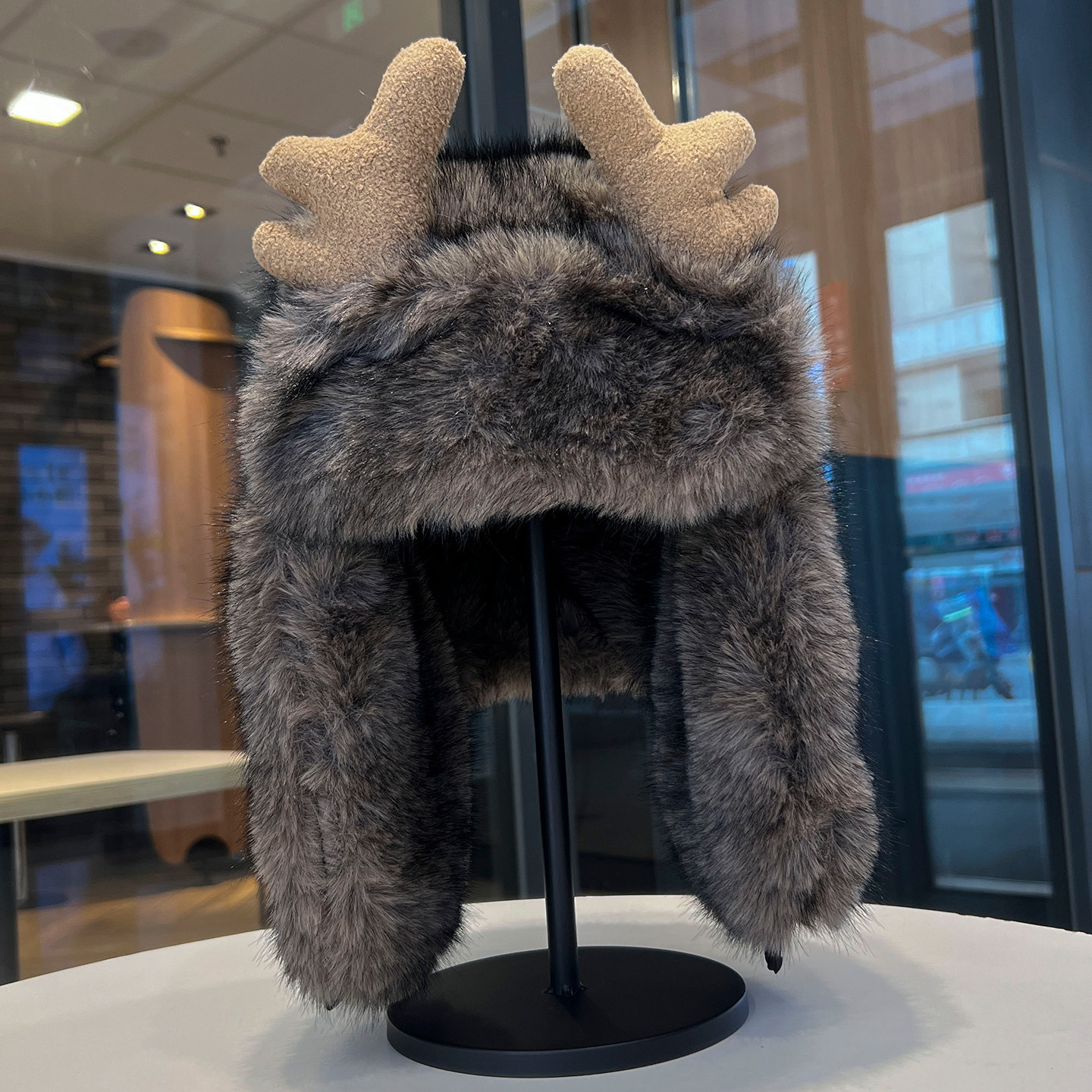 📚 鹿角仿皮草雷锋帽男女冬季加厚加绒保暖防寒可爱护耳滑雪飞行员帽