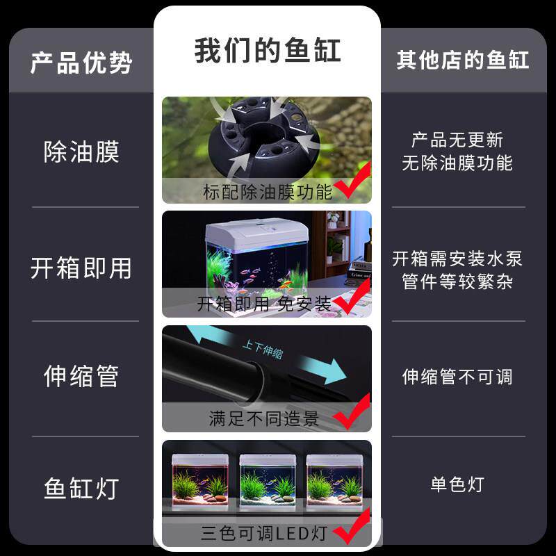 📚 2025新款免换水鱼缸过滤制氧All玻璃小型桌面客厅生态水族箱