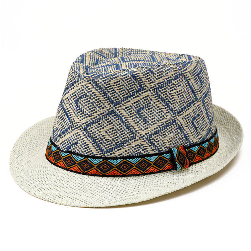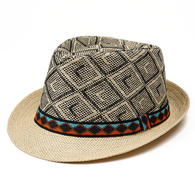 📚 草编帽子男韩版潮时尚遮阳小礼帽英伦复古爵士帽绅士帽防嗮草帽