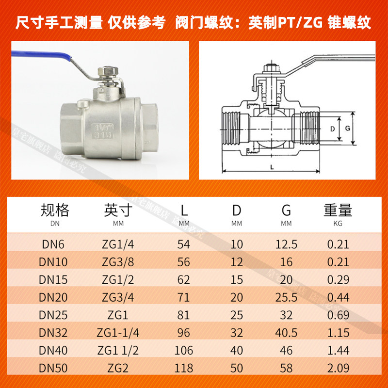 📚 不锈钢二片式球阀304316内螺纹重型球阀Q11F全通径丝扣球阀4分6分