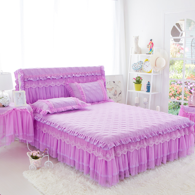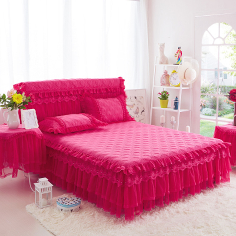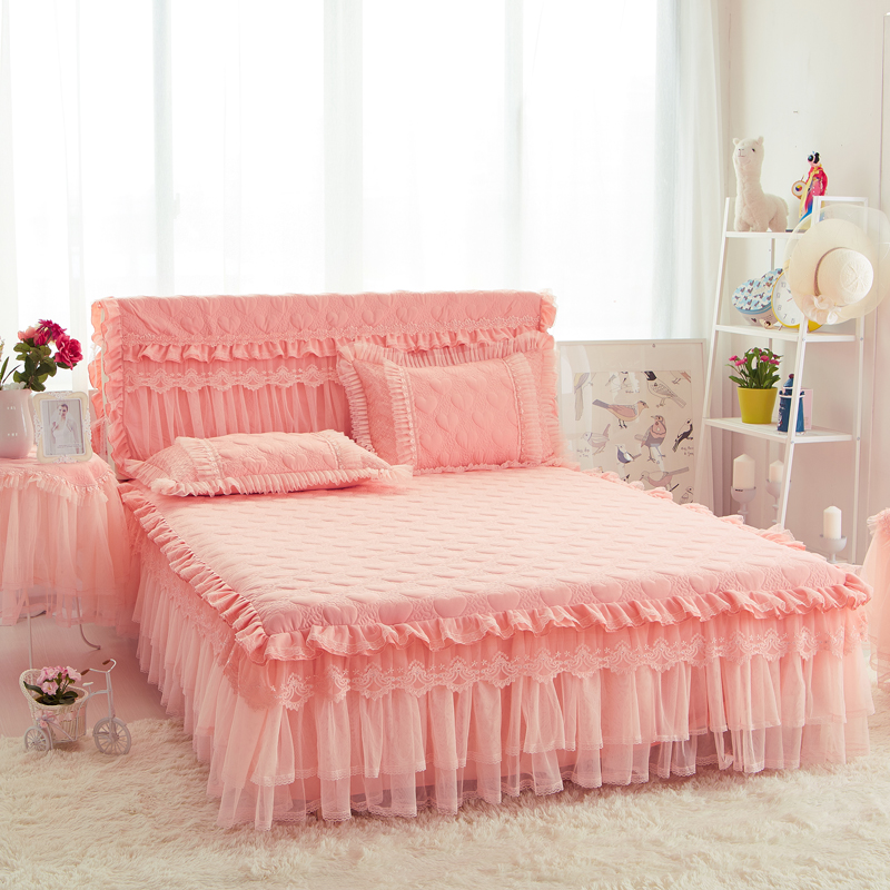 📚 夹棉加厚床裙床罩三件套欧式蕾丝床单1.8m1.5床套保护罩公主风2.2