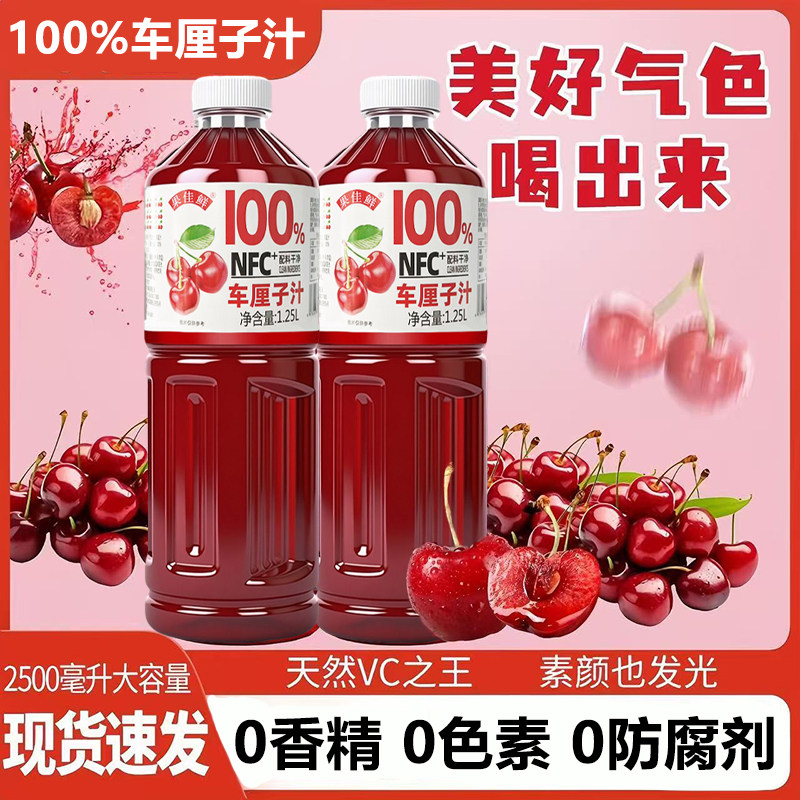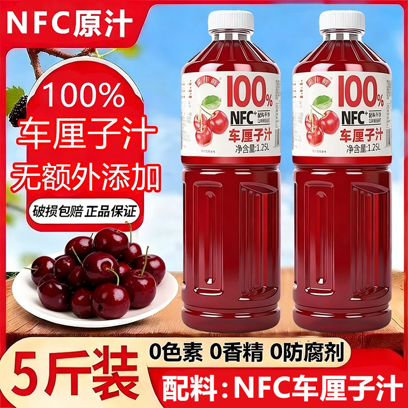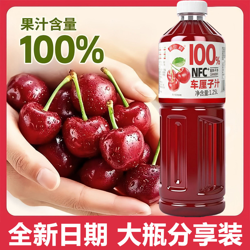 📚 【5斤特价】100%NFC车厘子汁1.25L*2大瓶无防腐剂鲜果汁新日期