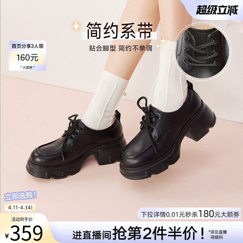 📚 百思图春商场新款复古英伦牛皮牛津鞋女通勤皮鞋单鞋UMG03AM5